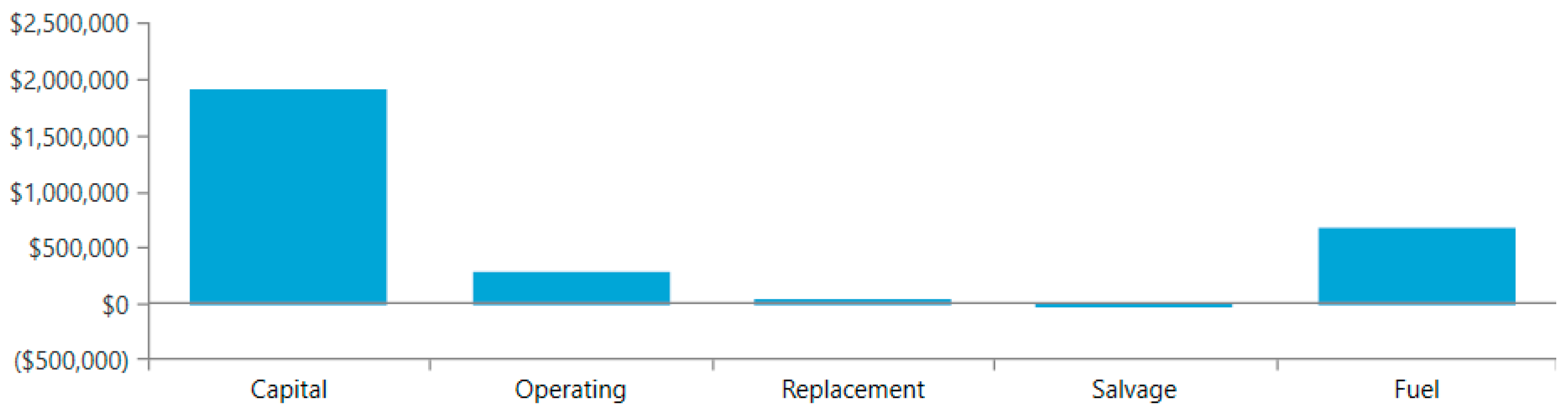 Figure 7 illustrates the corresponding annualized cost breakdown by cost type, which provides a different but consistent interpretation. The annualized capital cost is the largest cost category (approximately