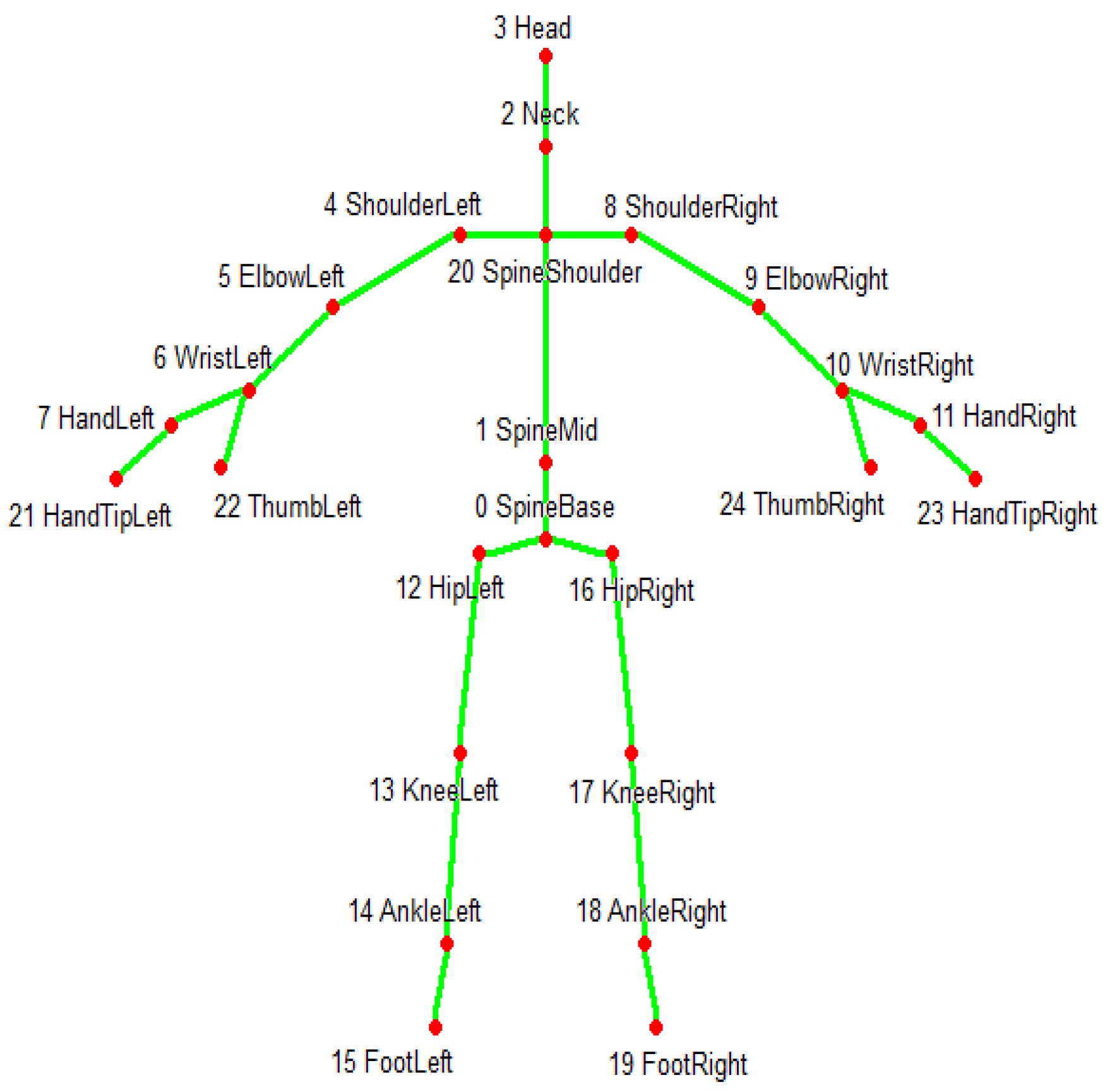 Spatial calibration was performed to align the projected stimulus coordinates with the depth camera’s coordinate system. Lower-limb joint coordinates were extracted in real time from the depth camera’s skeletal tracking output. Specifically, joint indices corresponding to the left knee and foot (indices 14 and 15) and the right knee and foot (indices 18 and 19) were used to determine foot placement and stimulus interaction (