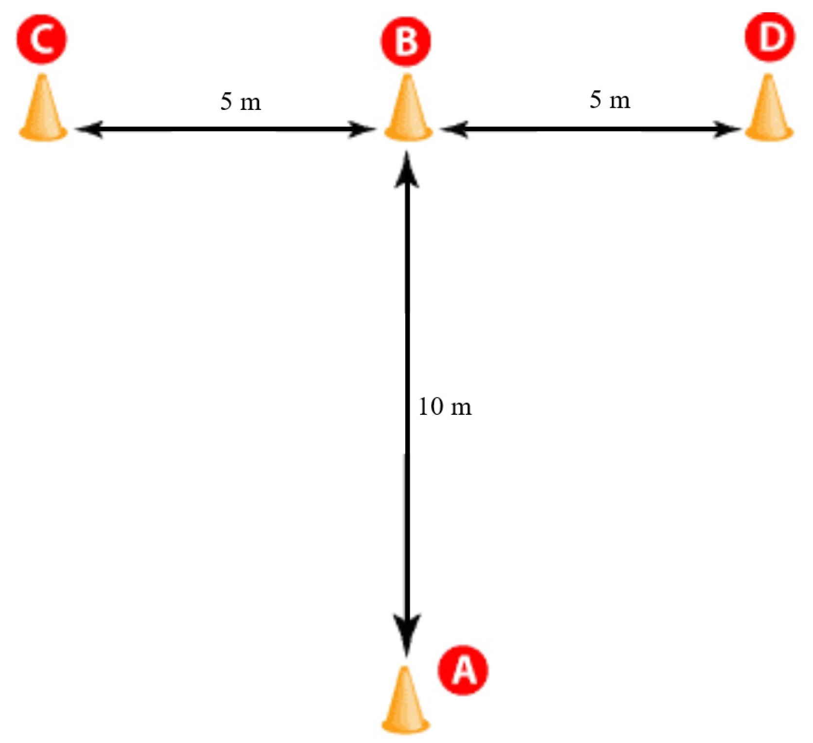 Each athlete was positioned behind the cone at point A, which served as the starting point, with both feet placed behind the starting line (