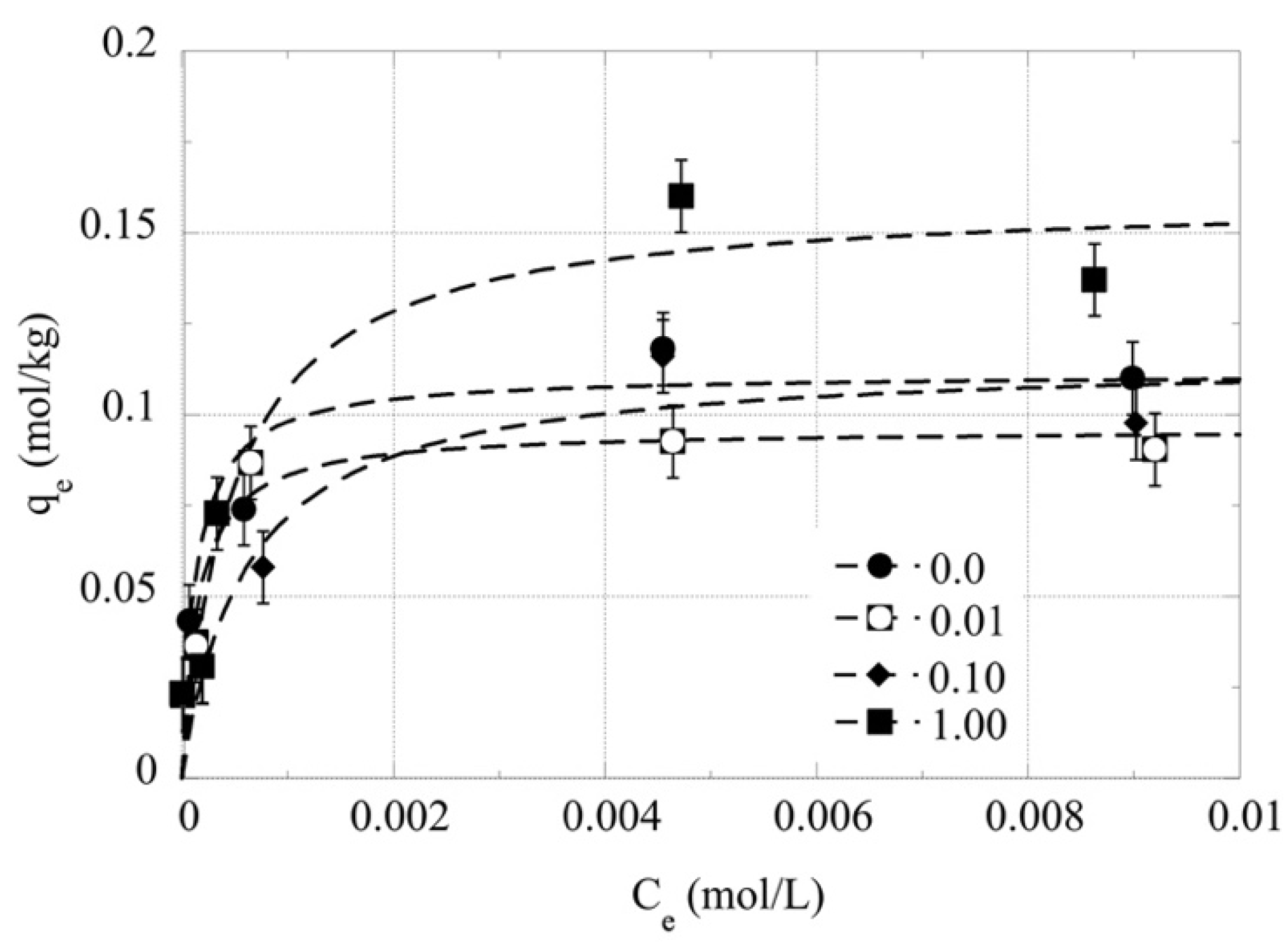 Because the experiments were conducted at ultra-trace radionuclide concentrations, non-negligible adsorption to the container walls was accounted for, and corrected adsorption values were used in the Kd calculations.
