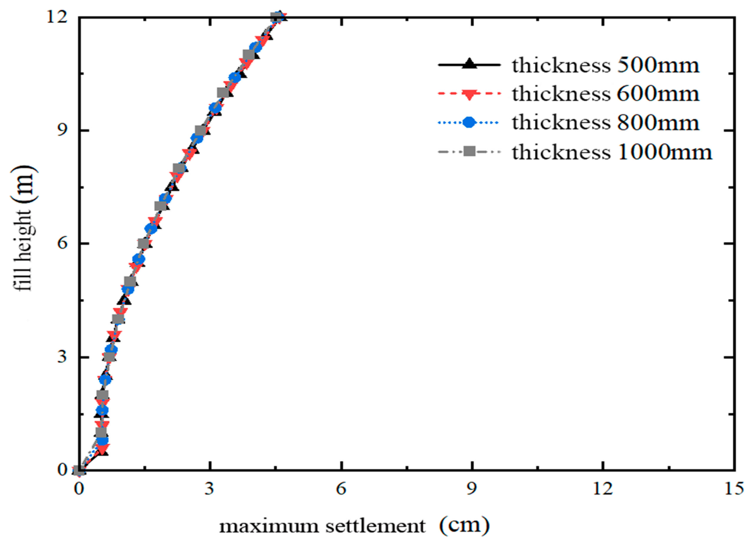 2.2. Influence of Layered Filling Thickness on Settlement