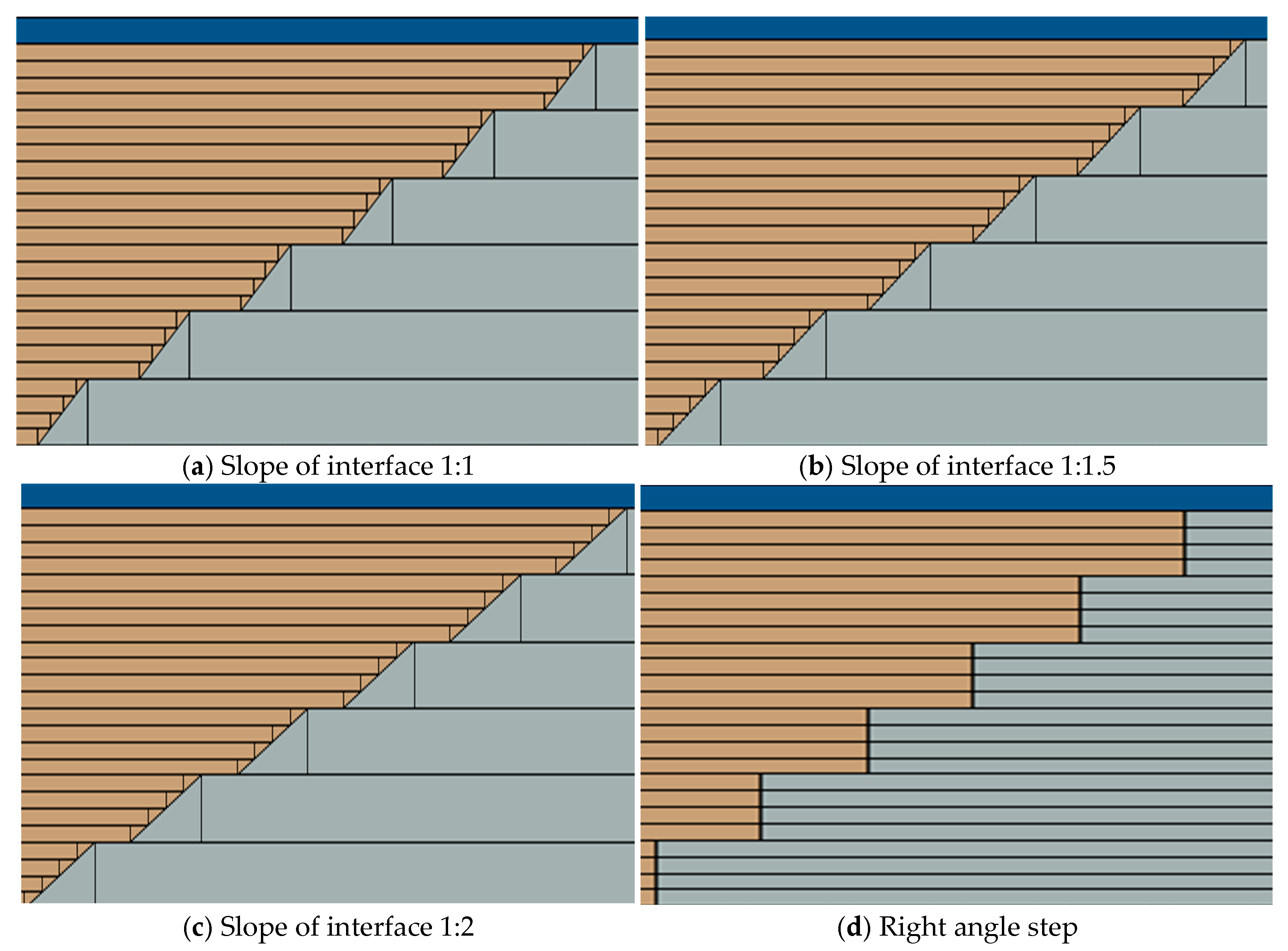 | Slope Ratio of Connecting Surface | 1:1 | 1:5 | 1:2 | Right Angle Step |