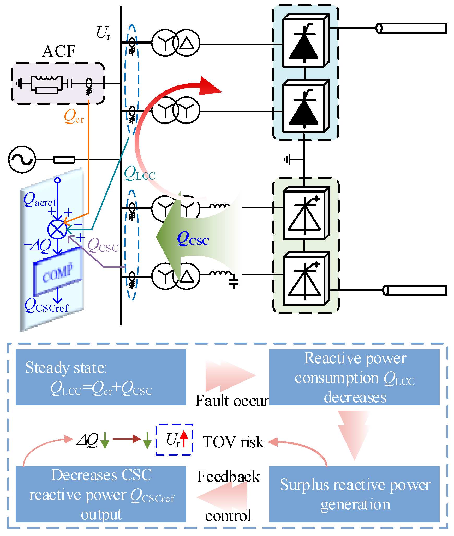 - Yin, C.; Li, F. Reactive Power Control Strategy for Inhibiting Transient Overvoltage Caused by Commutation Failure. IEEE Trans. Power Syst. 2021, 36, 4764–4777. [Google Scholar] [CrossRef]