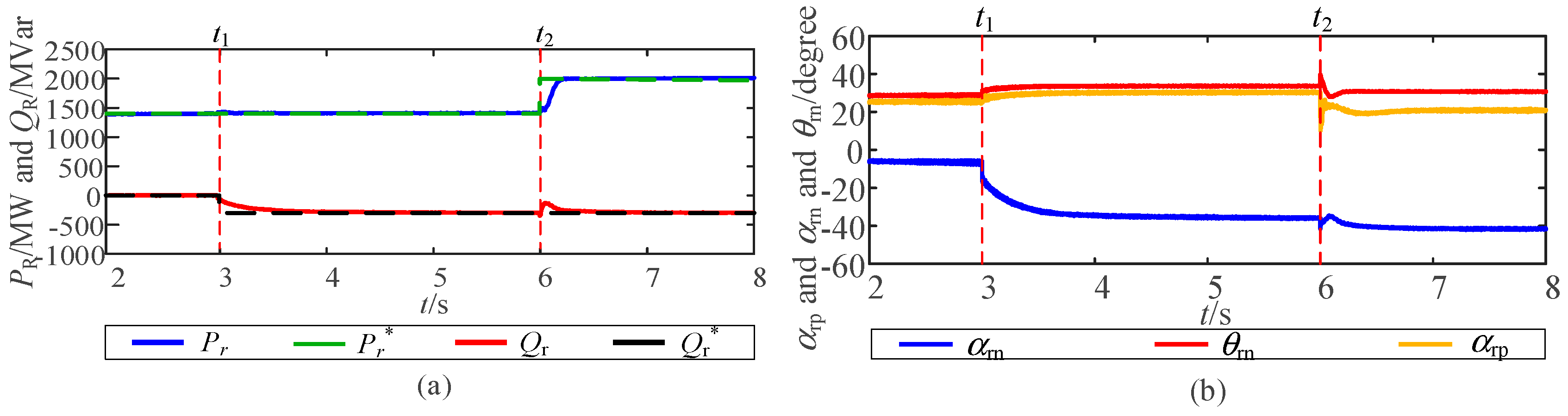 - Under steady-state operating conditions, the proposed HCSC-HVDC system, combined with the RPCC strategy, enables partial decoupling of active and reactive power, while ensuring unity power factor operation at both the sending- and receiving-end converters.