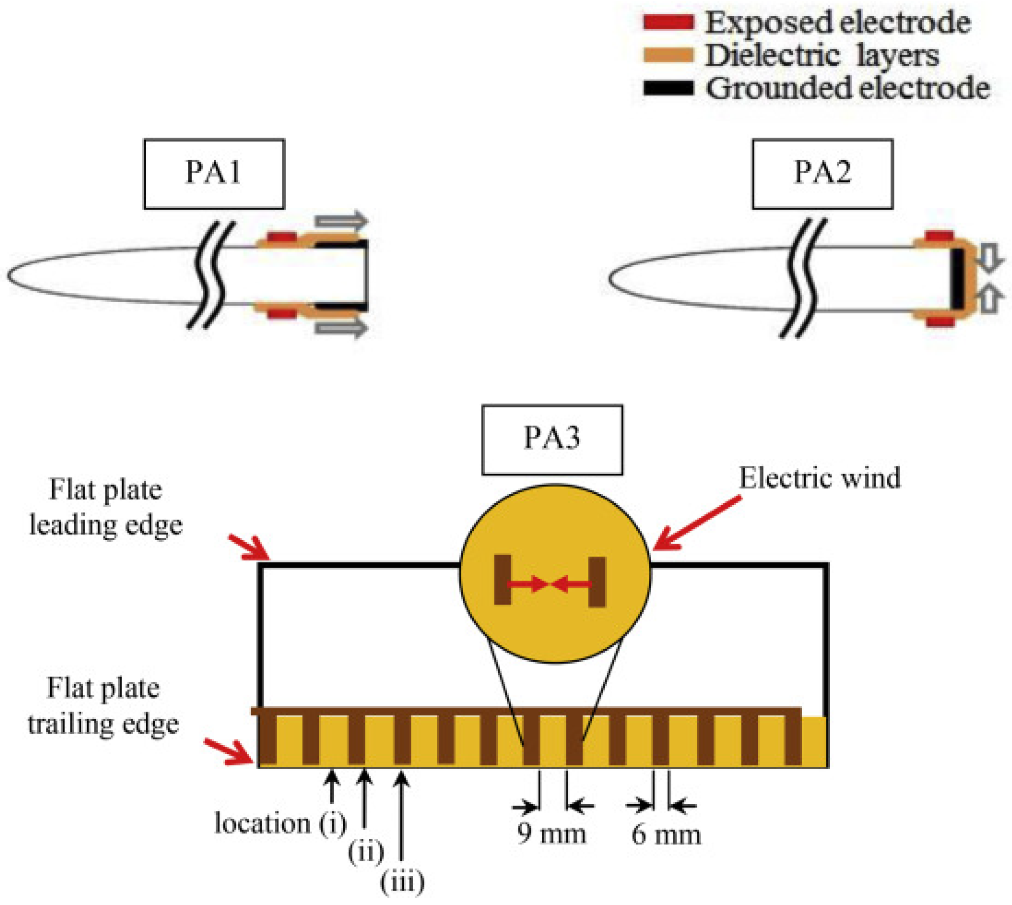 - In the PA, when the distance (gap) between the electrodes exceeds a certain threshold, the electric field dropped down. When the distance was negative (i.e., part of the upper electrode was located above the lower one), the symmetric distribution of the electric field did not accelerate the ionic wind.