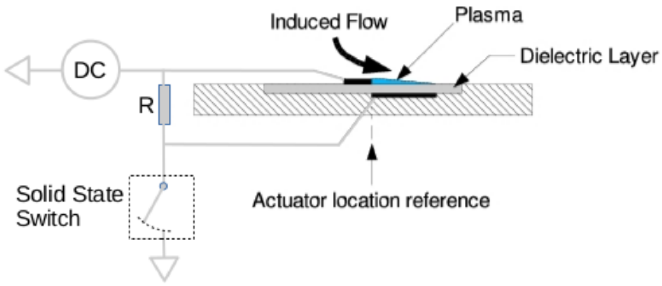 3.1. Asymmetric DBD Plasma Actuator (PA)