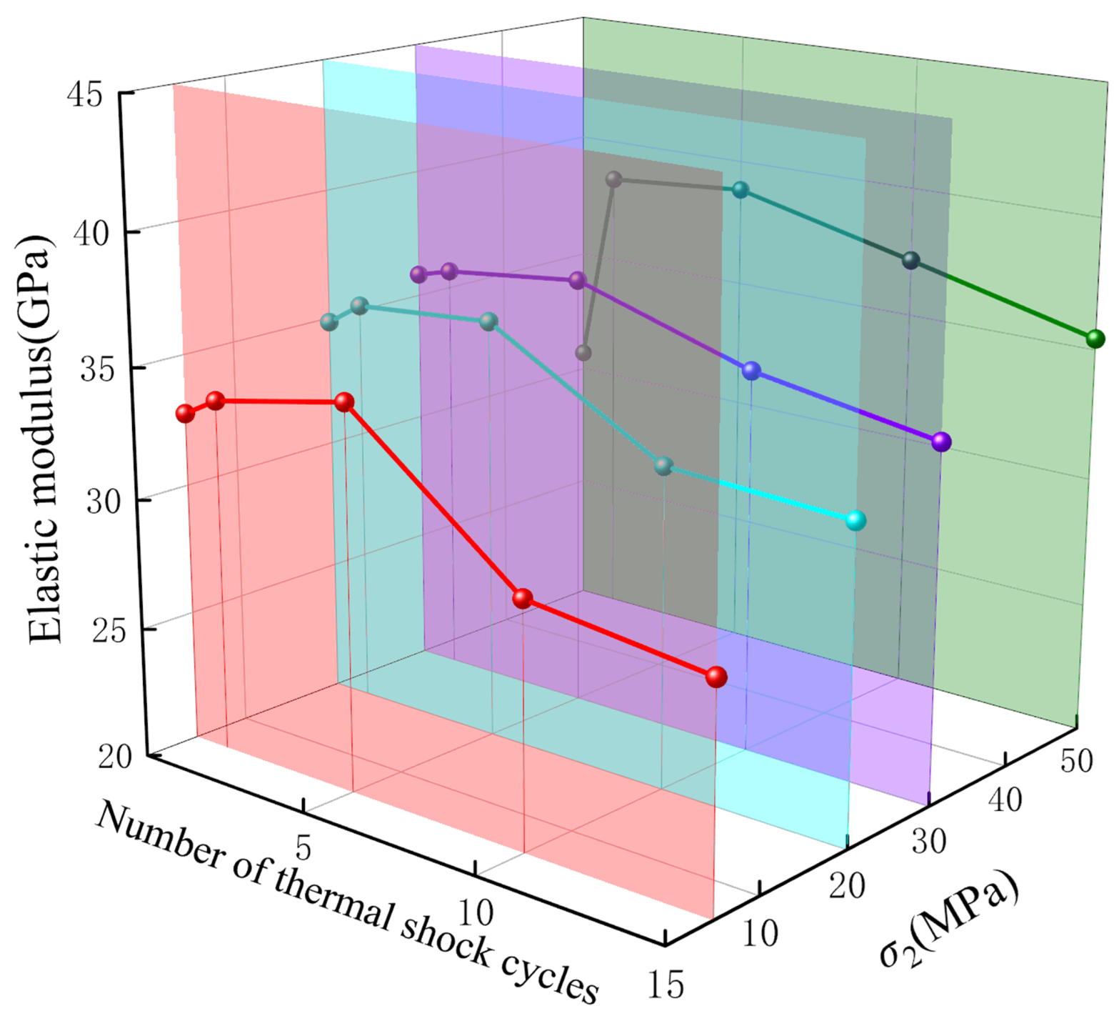| (MPa) | Thermal Shock Cycles | E (GPa) | (MPa) | (MPa) | (MPa) |