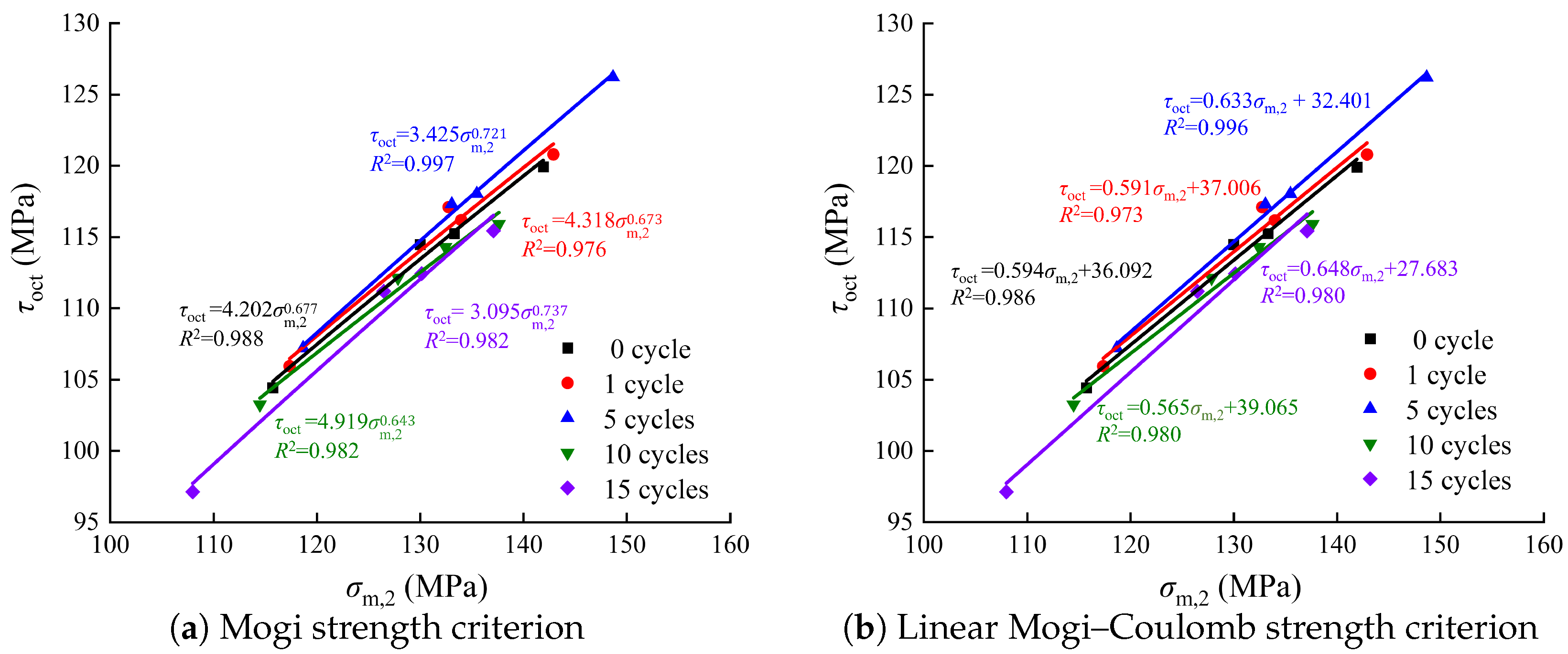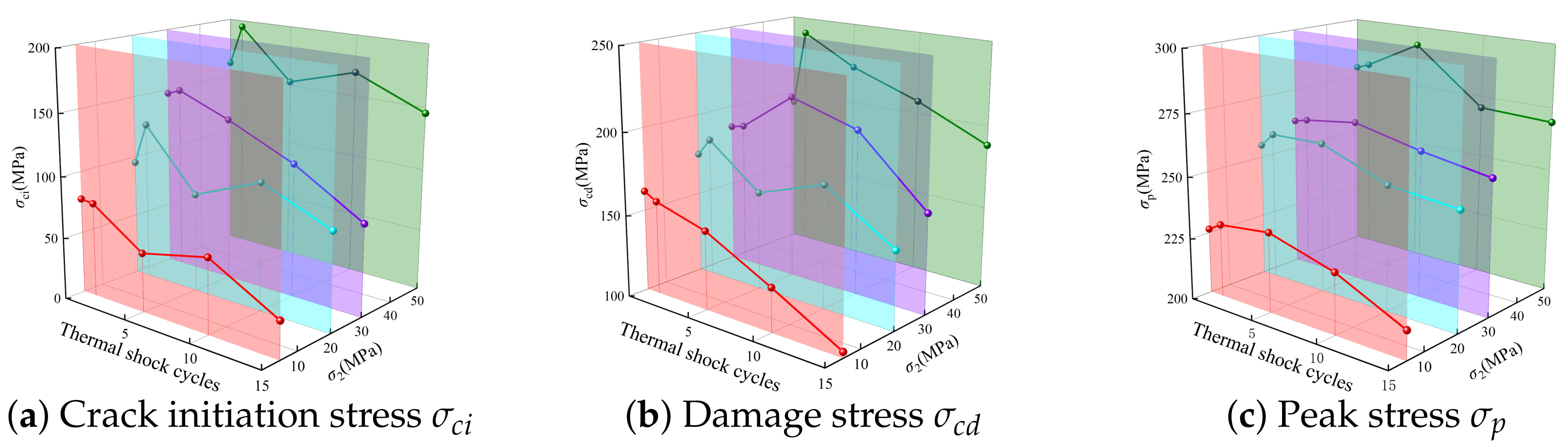 | Thermal Shock Cycles | Mogi Criterion | Mogi–Coulomb Criterion | ||||