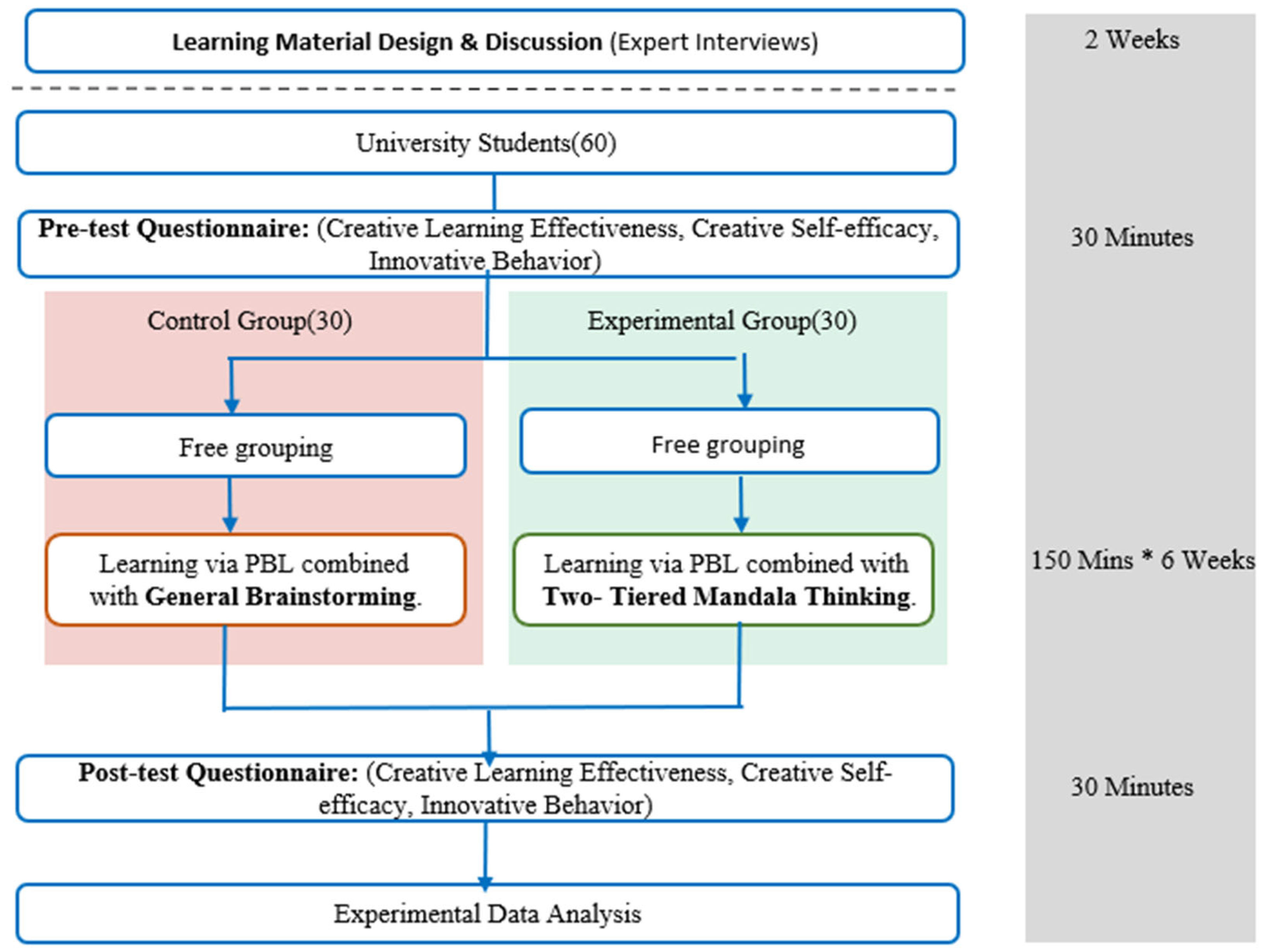 - RQ1: Does the Two-Tier Mandala Thinking Method lead to significantly different creative learning effectiveness compared to conventional brainstorming?