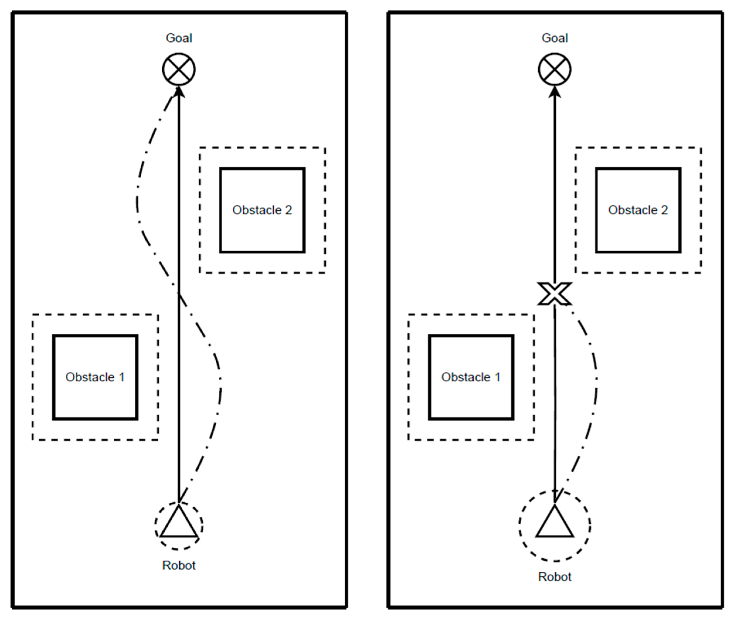 8] modeled the robot as a particle moving within an artificial force field, attracted toward a goal and repelled by obstacles. While computationally efficient and conceptually intuitive, such methods are well known to suffer from local minima, in which the robot may become trapped in concave structures or oscillate between competing repulsive forces. Collectively, these foundational approaches highlighted the fundamental trade-off between reactivity and global foresight that continues to shape the design of modern navigation systems.