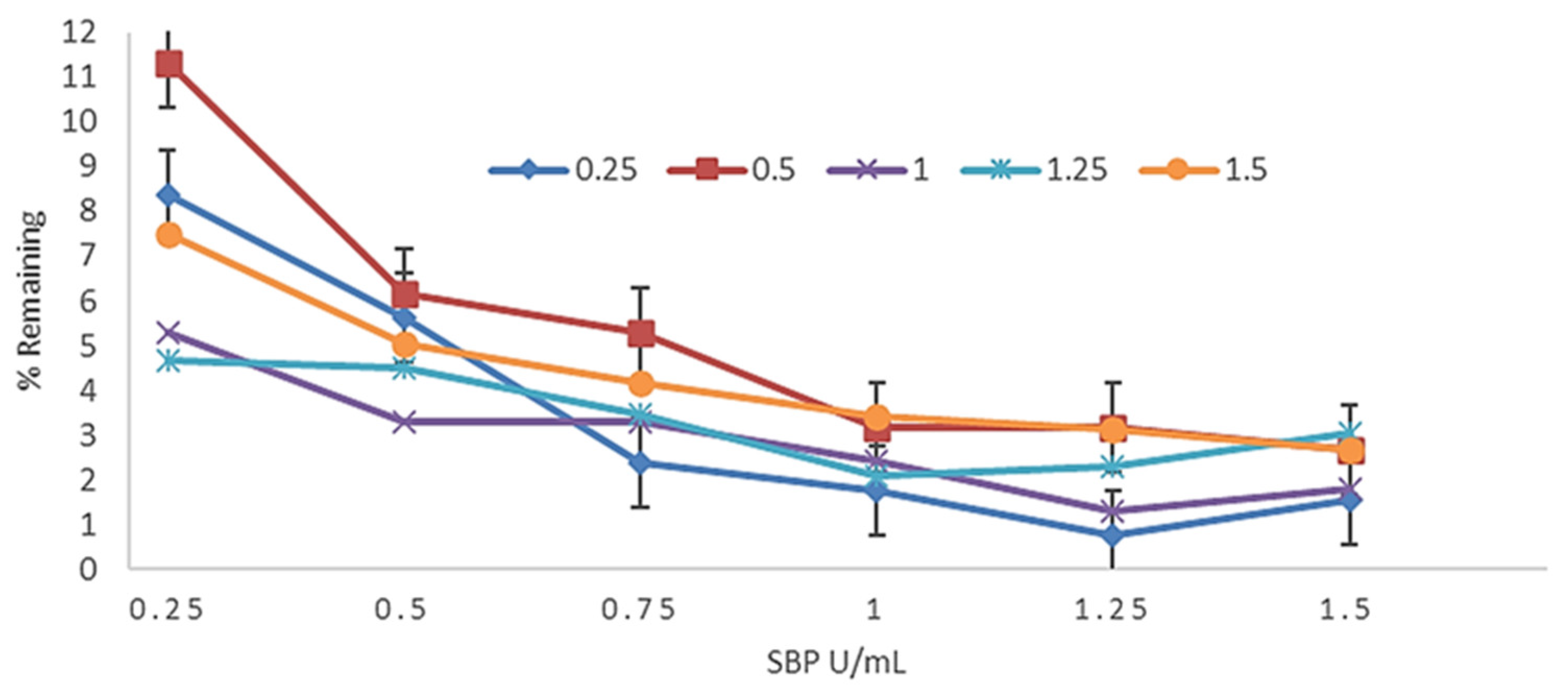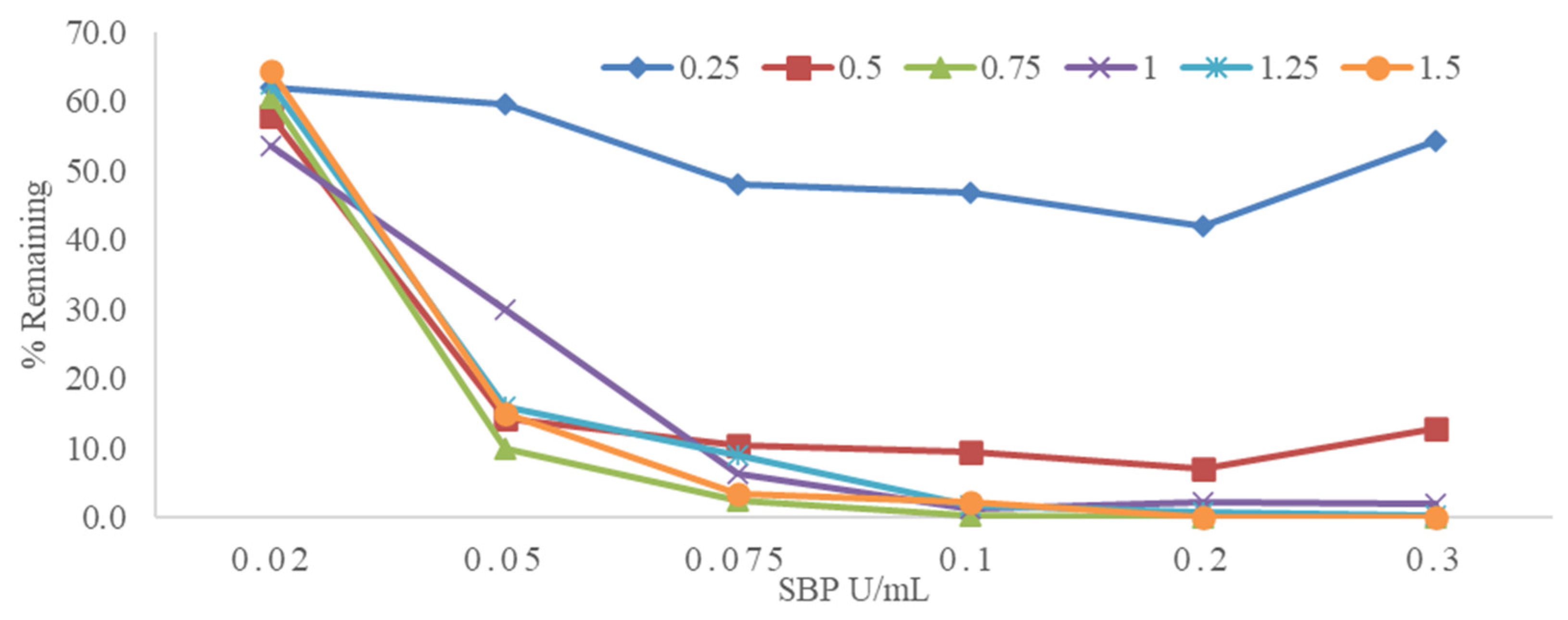 symbol, the pH optimum may be discerned as 3.5.3.2. Effect of SBP and H2O2