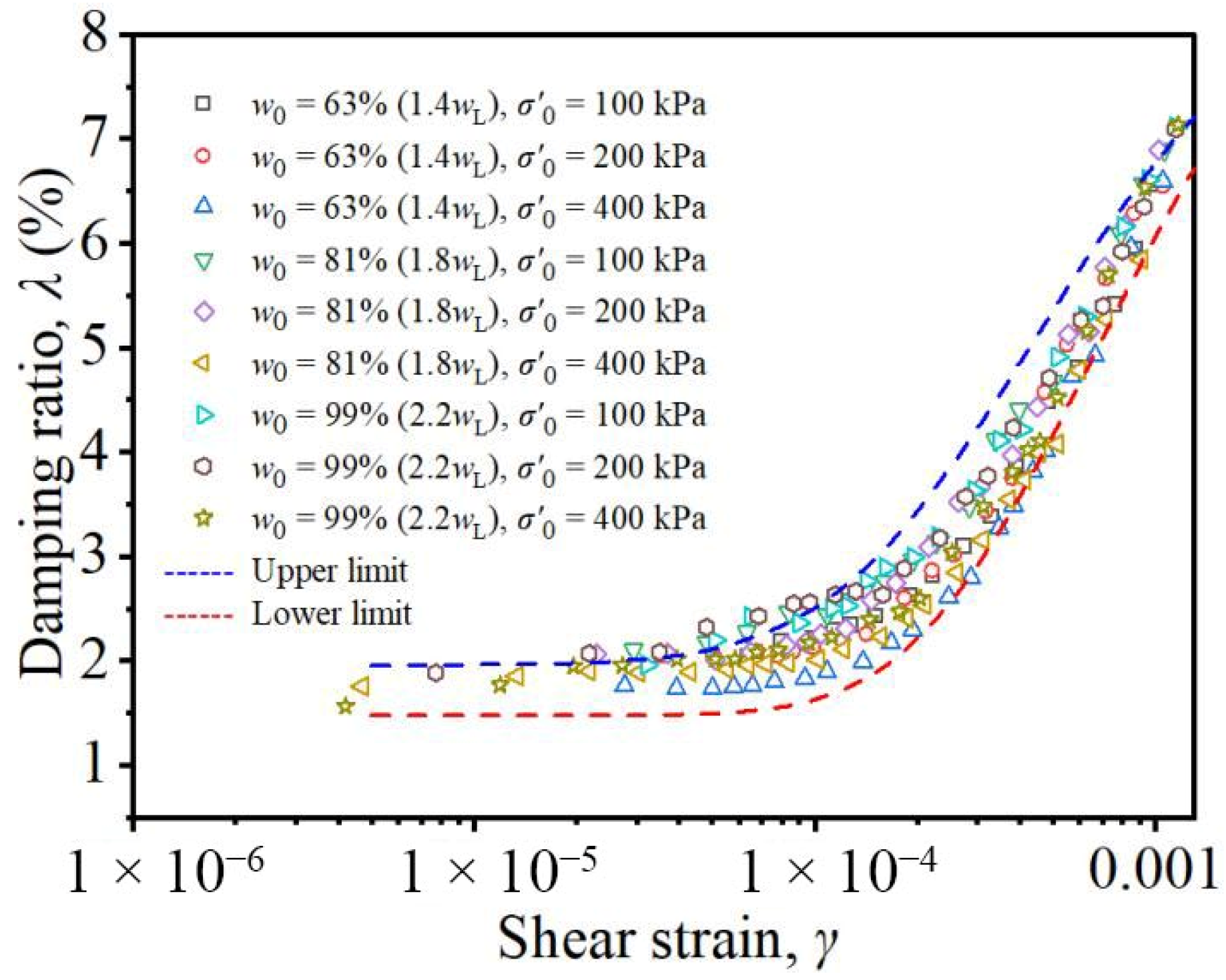 - Hardin, B.O.; Drnevich, V.P. Shear modulus and damping in soils: Measurement and parameter effects. J. Soil Mech. Found. Div. ASCE 1972, 98, 603–624. [Google Scholar] [CrossRef]