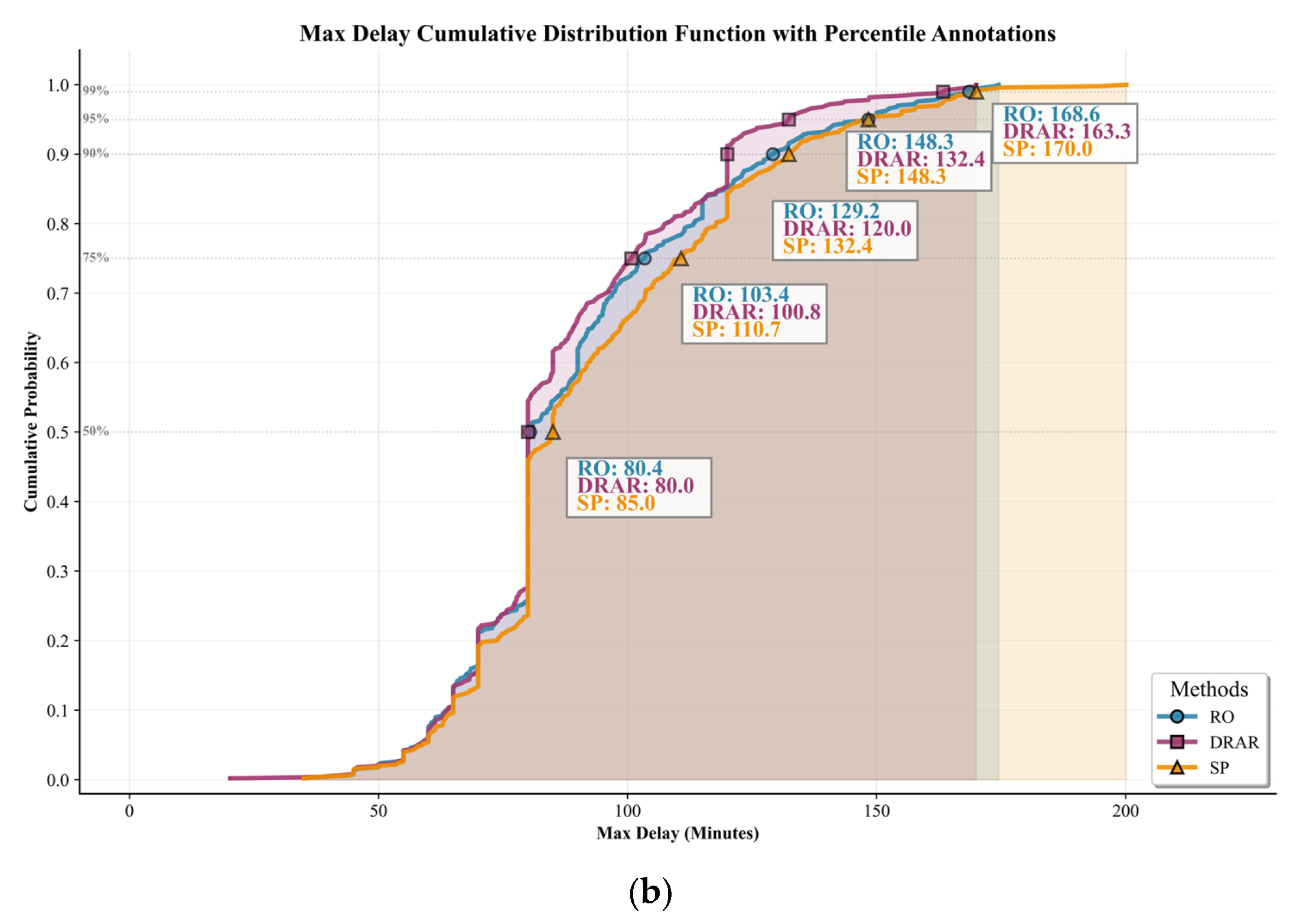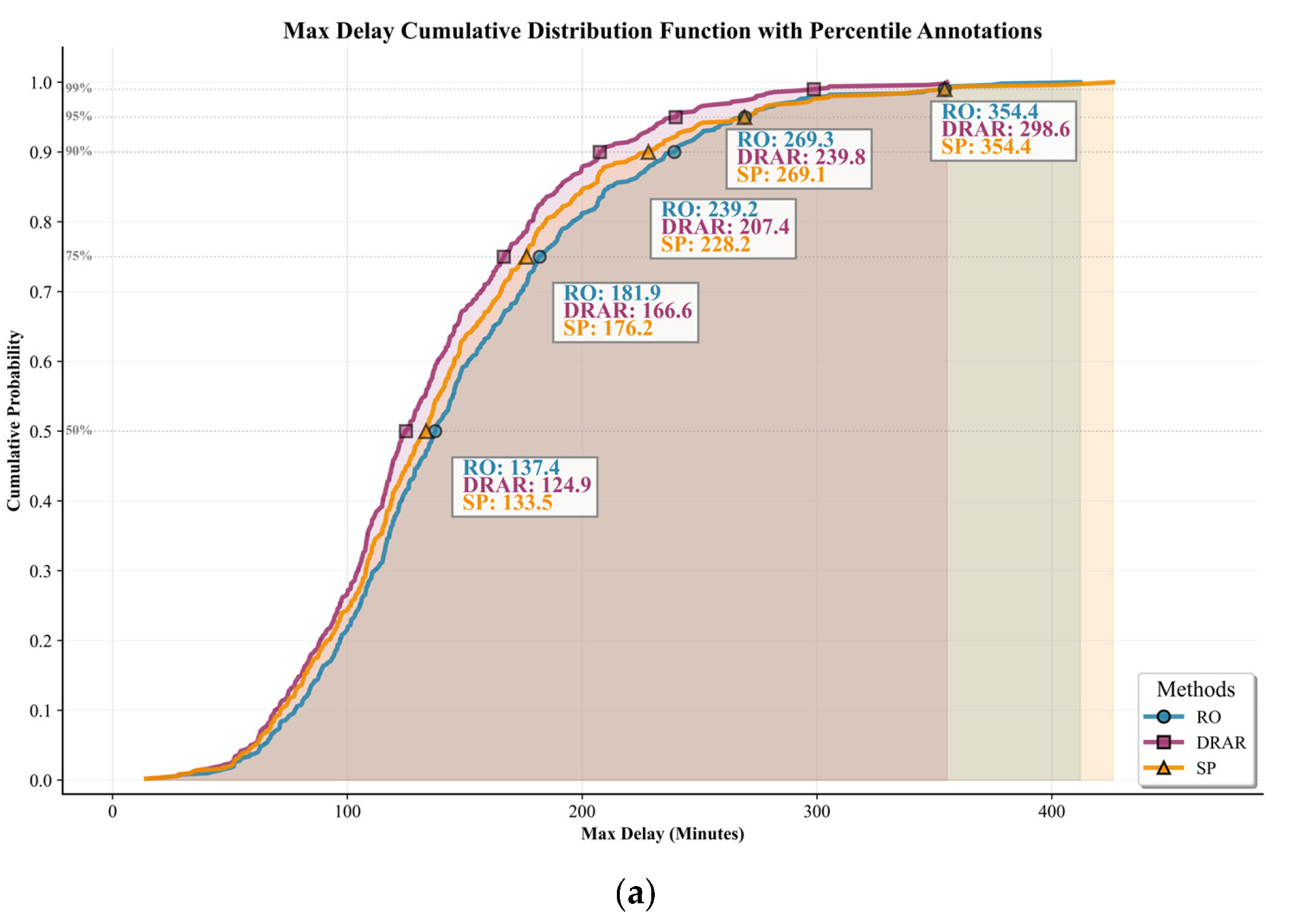 - Inadequate Characterization of Delay Distribution Uncertainty: Stochastic optimization methods rely on assumptions of specific probability distributions, which struggle to capture the complex delay patterns arising from multi-source disruptions in real operations. While traditional robust optimization handles bounded disturbances, its static or empirically bounded uncertainty sets fail to reflect dynamic changes in the probability structure (e.g., variance fluctuations or tail risk evolution), often leading to excessive conservatism or infeasibility under extreme scenarios.