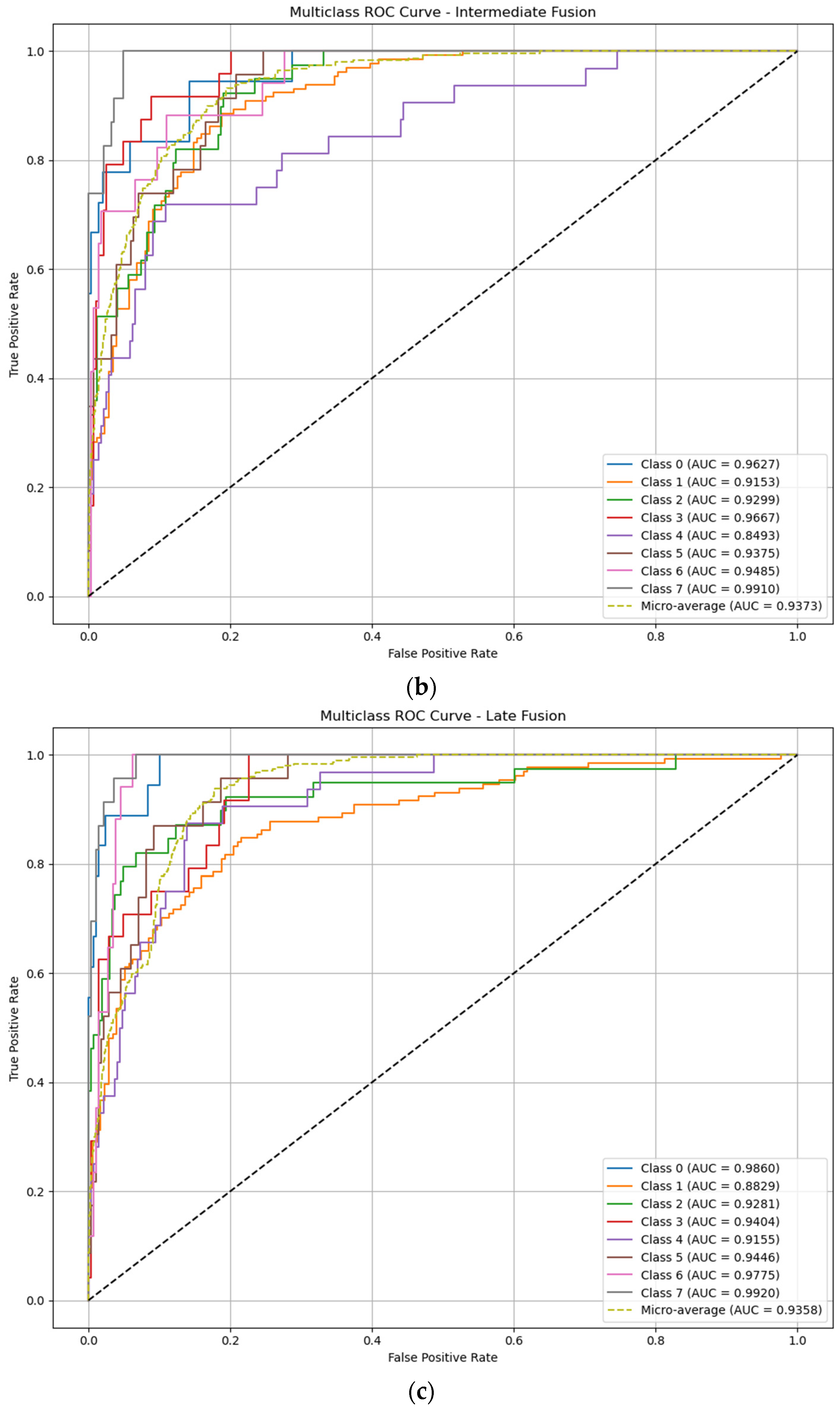 59] implemented intermediate fusion to emphasize representation learning between different modalities, such as chest X-ray or 3D-CT imaging with EMR data through latent concatenation and attention mechanisms. Intermediate fusion outperformed image-only or tabular-only models, achieving AUC values of around 93–96%. In the same year, Zheng et al. (2023) [