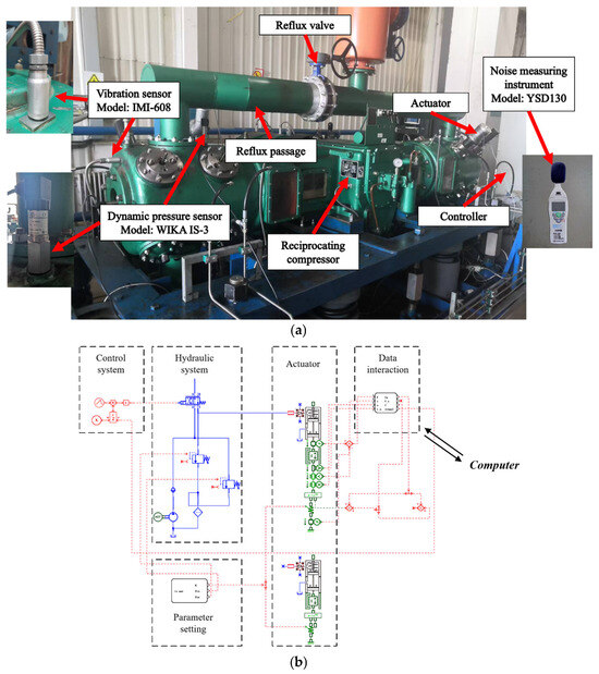 (a). Physical diagram of compressor experimental equipment. (b). Schematic diagram of compressor experimental equipment.