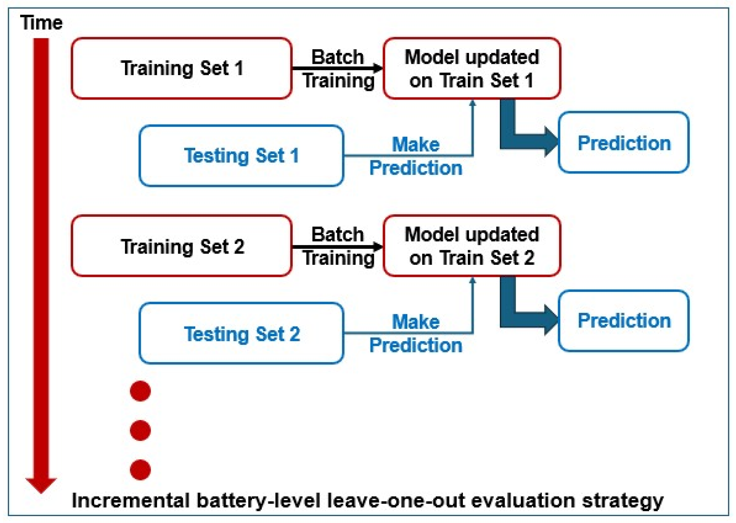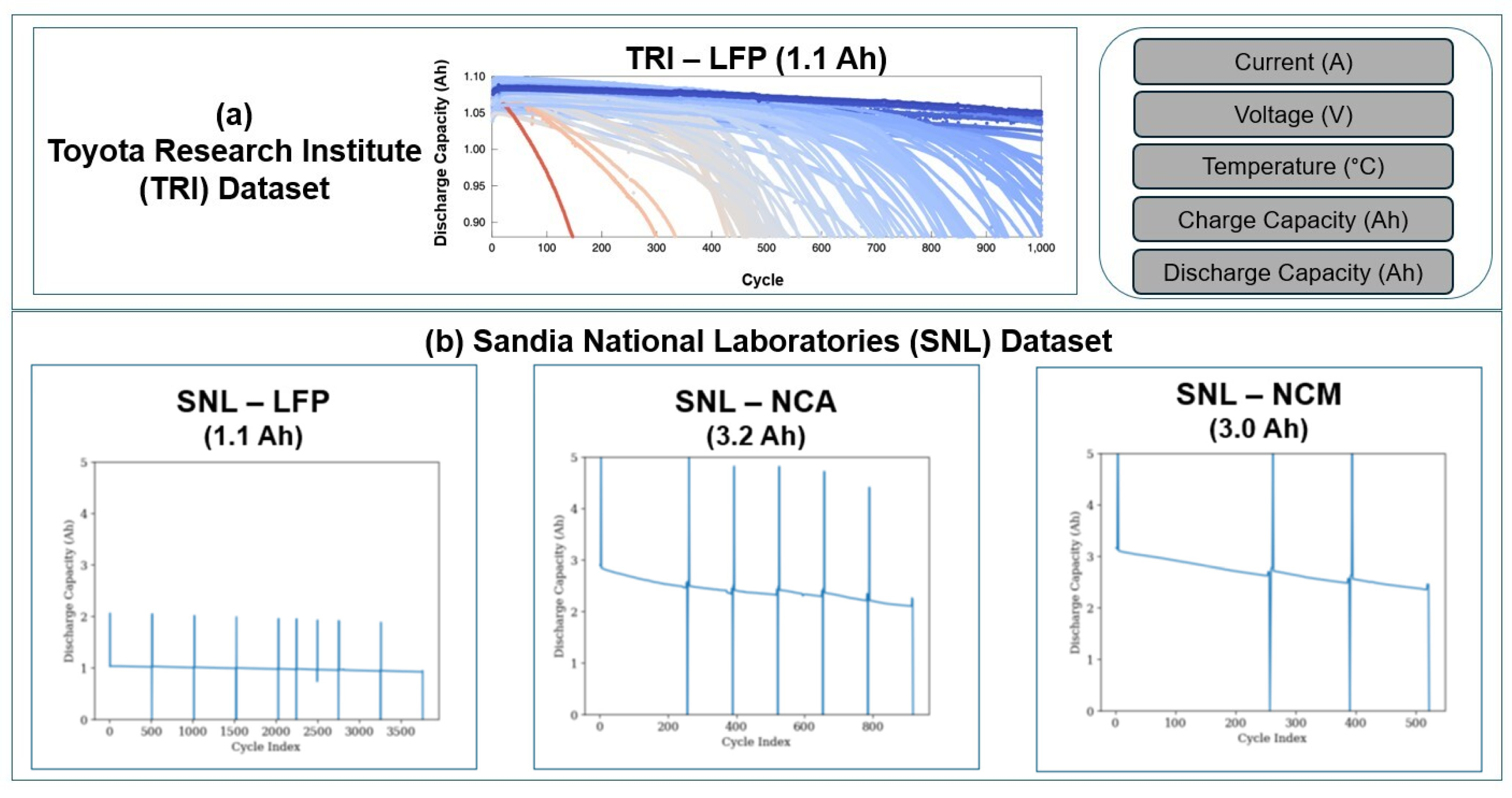 51] investigates battery health and lifetime estimation using the SNL dataset, applying a cell-level training and testing strategy that captures degradation variability across a range of operating conditions. This broader data configuration enhances model robustness but also introduces sensitivity to dataset-specific factors, such as protocol diversity and measurement resolution, which affect hyperparameter tuning. The method depends on high-resolution cycling data, which increases computational demands during training, though inference remains efficient once the model is trained. The DegradAI Mixture-of-Experts model shows strong chemistry-adaptive performance, reporting a low mean absolute error (≈2.5 × 10