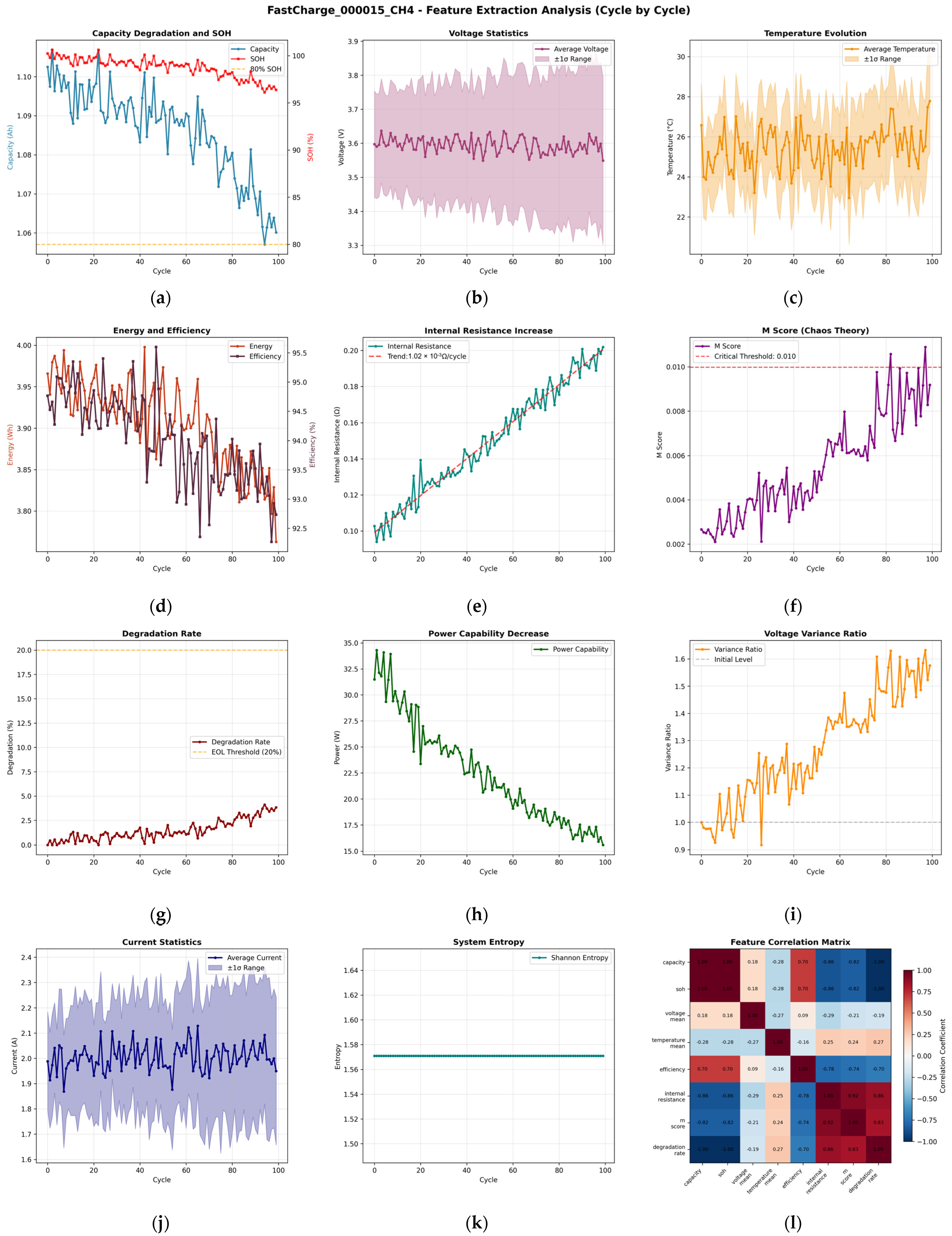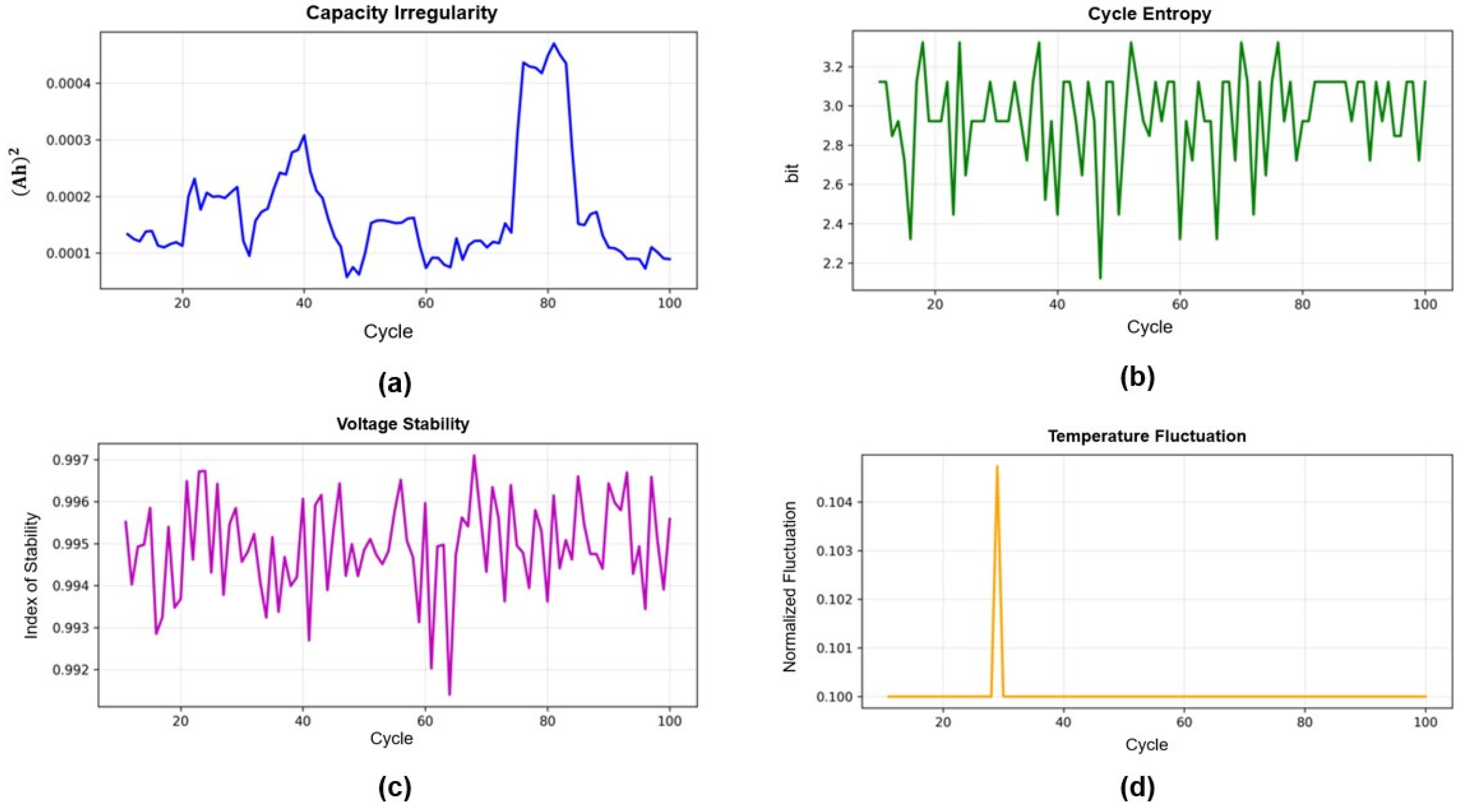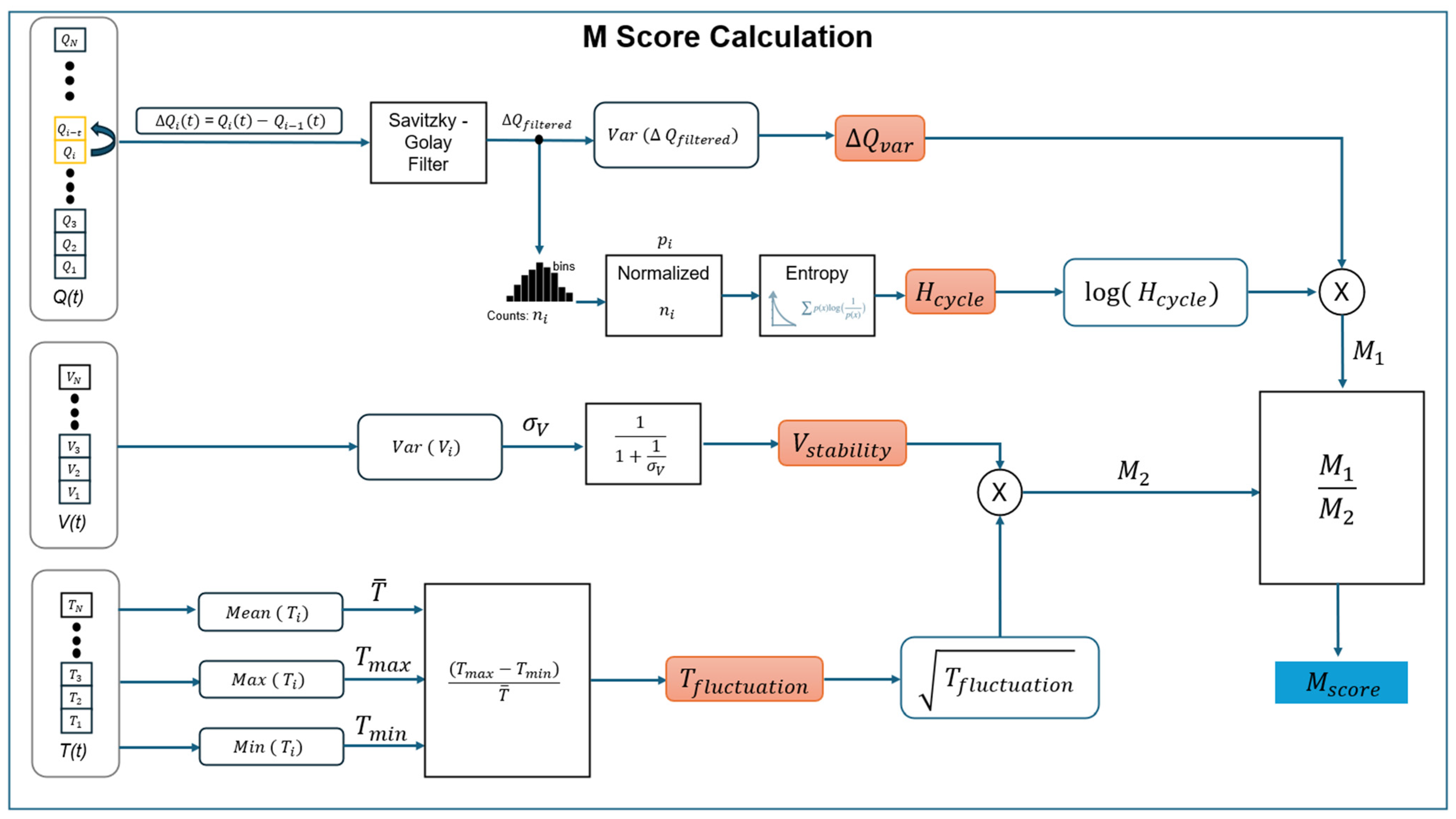 Despite its advantages, several limitations of the M-score should be explicitly acknowledged. First, the indicator does not capture mechanistic distinctions among degradation processes such as lithium plating, SEI evolution, or electrode structural failure. Distinct failure processes may produce similar macroscopic signatures in voltage, temperature, or capacity measurements, resulting in comparable M-score responses despite fundamentally different degradation origins.