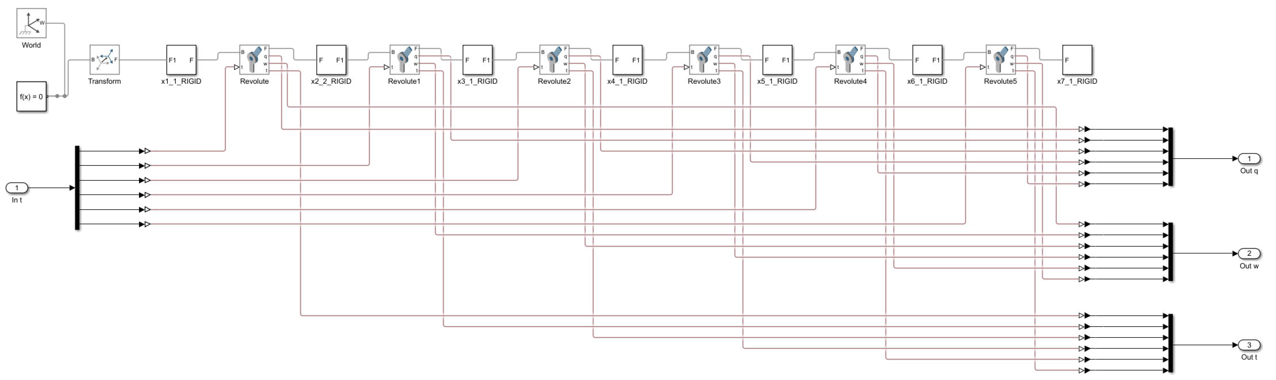 To ensure consistency between the mechanical structural model and the control-oriented dynamic model within the proposed digital twin framework, and to evaluate the influence of flexibility on trajectory tracking performance under closed-loop conditions, a digital-twin co-simulation platform for a six-DOF flexible robotic manipulator is developed in MATLAB/Simulink. The platform adopts Simscape Multibody as the core environment to construct the virtual manipulator entity, enabling joint-torque actuation, state feedback, and 3D visualization in an integrated manner. Meanwhile, the trajectory planning module and the torque control module are incorporated to form a closed-loop validation workflow of “desired trajectory–control law–digital twin model–state feedback”. Unlike directly establishing a high-order flexible-body dynamic model, the key structural parameters identified by the ANSYS FEA in