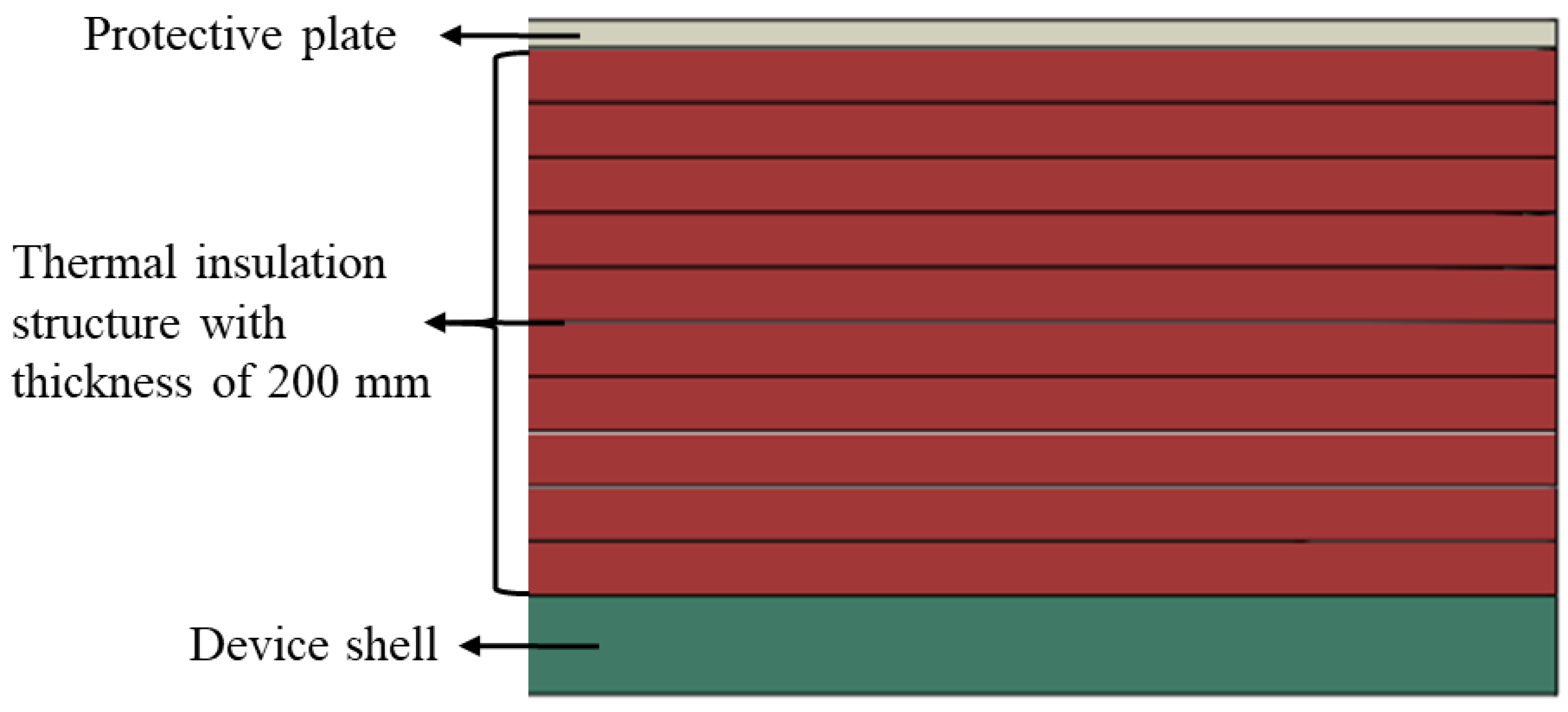 Because the internal thermal insulation structure is exposed to elevated temperatures during device operation, it is critical to maintain thermal insulation performance. Accordingly, numerical simulations of thermal insulation performance are conducted in this section to validate the rationality and reliability of the structural design.