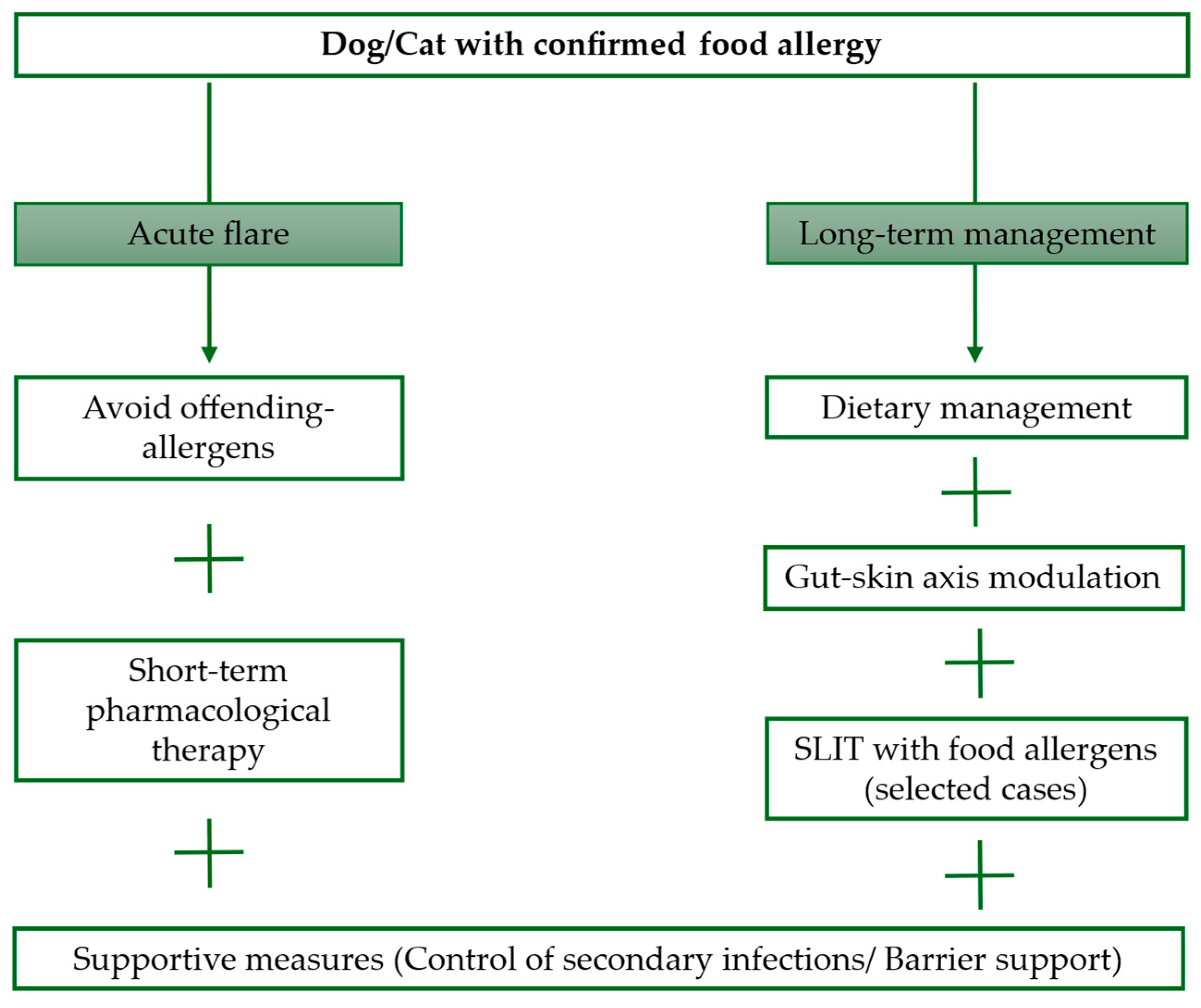 | Dietary management | Novel protein diet Hydrolyzed diet Home-cooked diet |