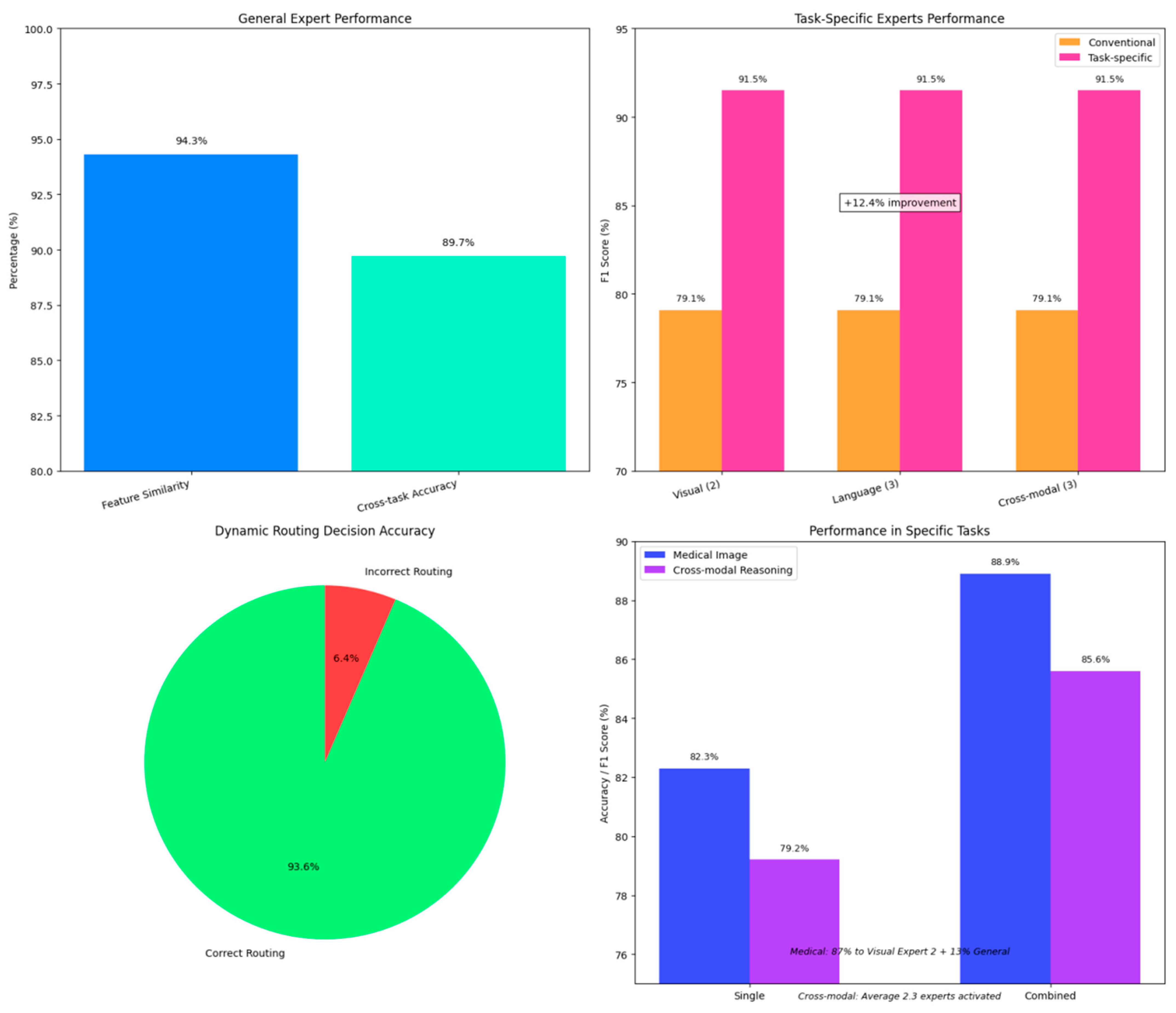 (3) Design an optimized hybrid expert (MoE) structure consisting of “general experts + task-specific experts + dynamic routing” to enhance information sharing among experts, solve the problem of low efficiency in cross-mode collaboration, and improve multitask adaptability.
