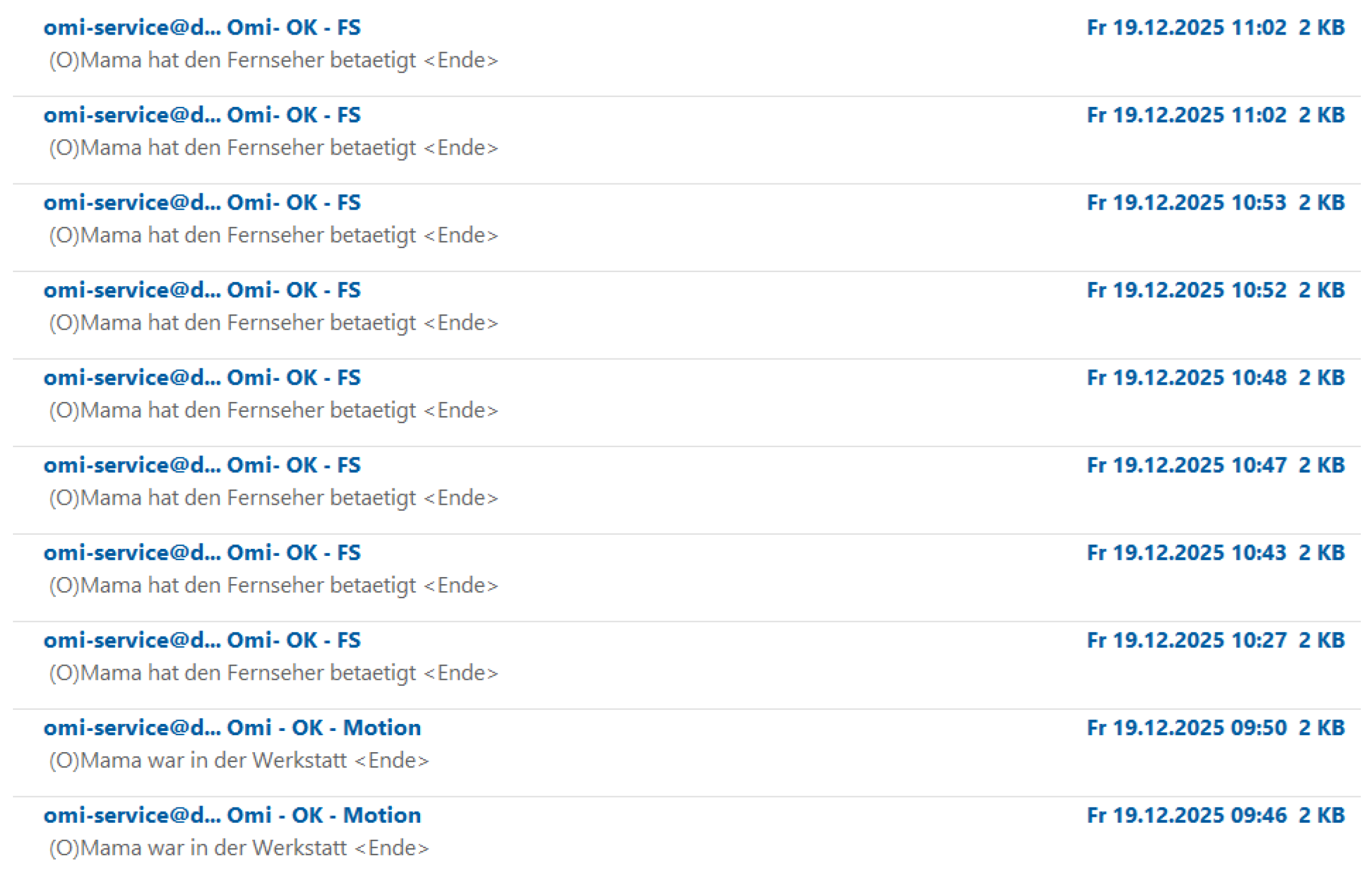 15], which deployed diverse sensor combinations across approximately 20 real-world households. Despite participants often stating that they did not follow strict routines, observation periods revealed that even a small number of smart components (as in the presented study, which required manual triggering) was sufficient to identify routine behaviour and deviations. Following an initial learning phase, the system was able to derive typical activity patterns and detect anomalies. Effective AAL support does not require explicit interaction or wearable devices. Environmental infrastructure and passive observation can already increase safety compared to conventional support, such as periodic visits or phone calls. The presented concept may even operate using devices not traditionally associated with smart homes, including televisions, internet routers, hi-fi equipment, or household appliances. The presented approach can automatically and unobtrusively react to deviations and trigger appropriate actions, as exemplified in this work by email notifications.
