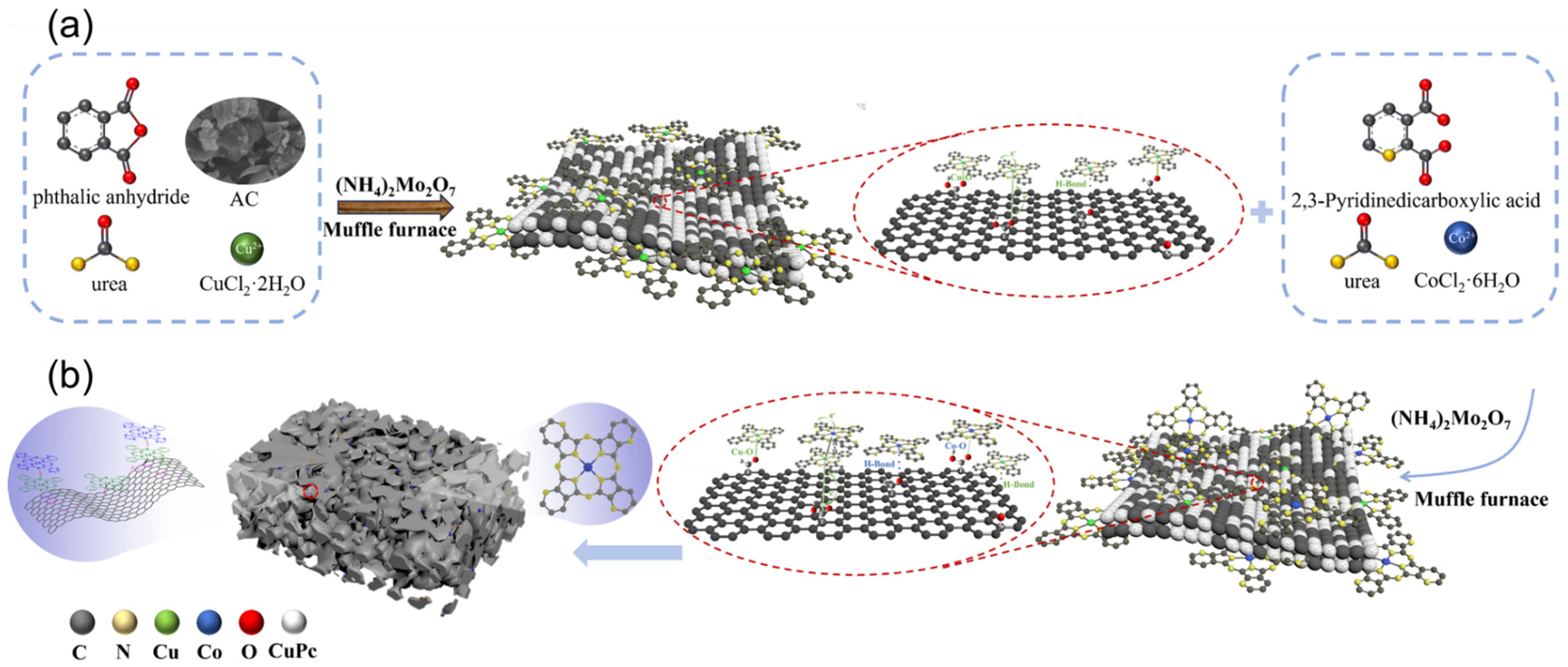Scheme 1). Oxygen-containing groups on the AC surface induce the anchoring of CuPc via metal-oxygen coordination and hydrogen bonding, thus rendering AC a structure-directing scaffold [