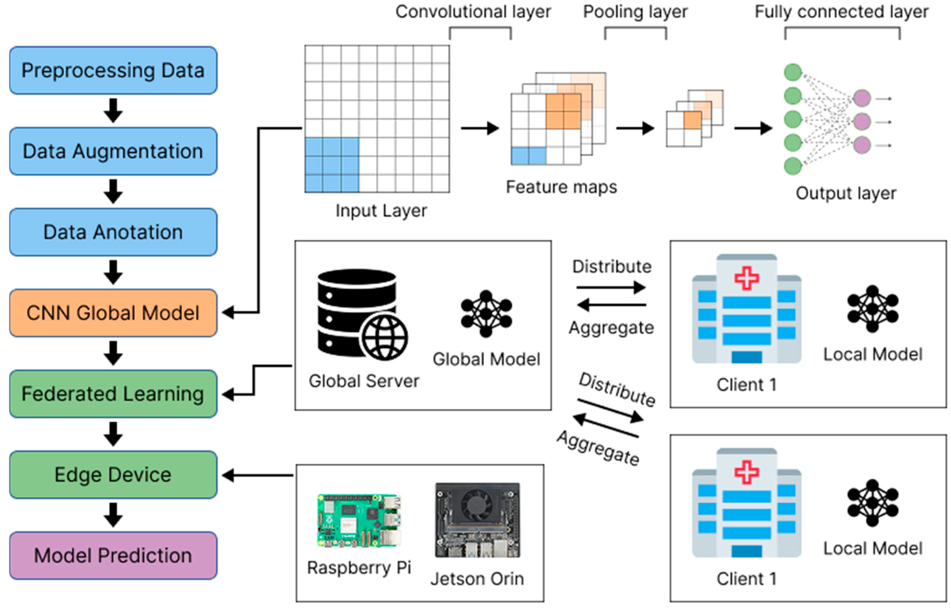 This study utilizes two edge computing devices, namely the Raspberry Pi 5 and Jetson Nano Orin Super, for the model inference process after the training stage using Federated Learning.