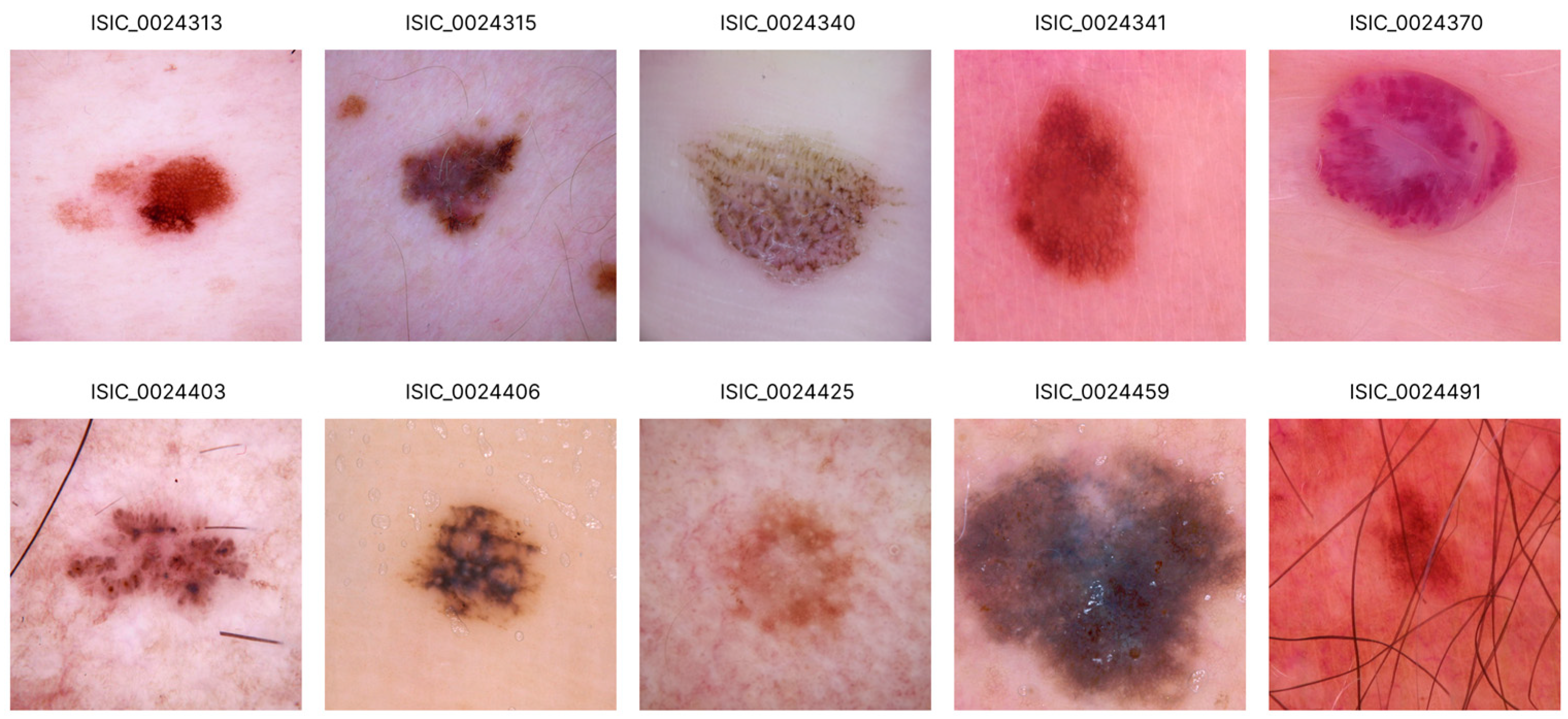 Table 1. The number of samples shown represents the original data before any preprocessing or resampling techniques were applied. The HAM10000 dataset is used exclusively during the global pretraining phase to initialize the global model in the Federated Learning framework. Meanwhile, the ISIC 2019 dataset is evenly divided and used as local datasets for each client. Each client receives a different subset of data while maintaining an equal distribution across all selected categories.