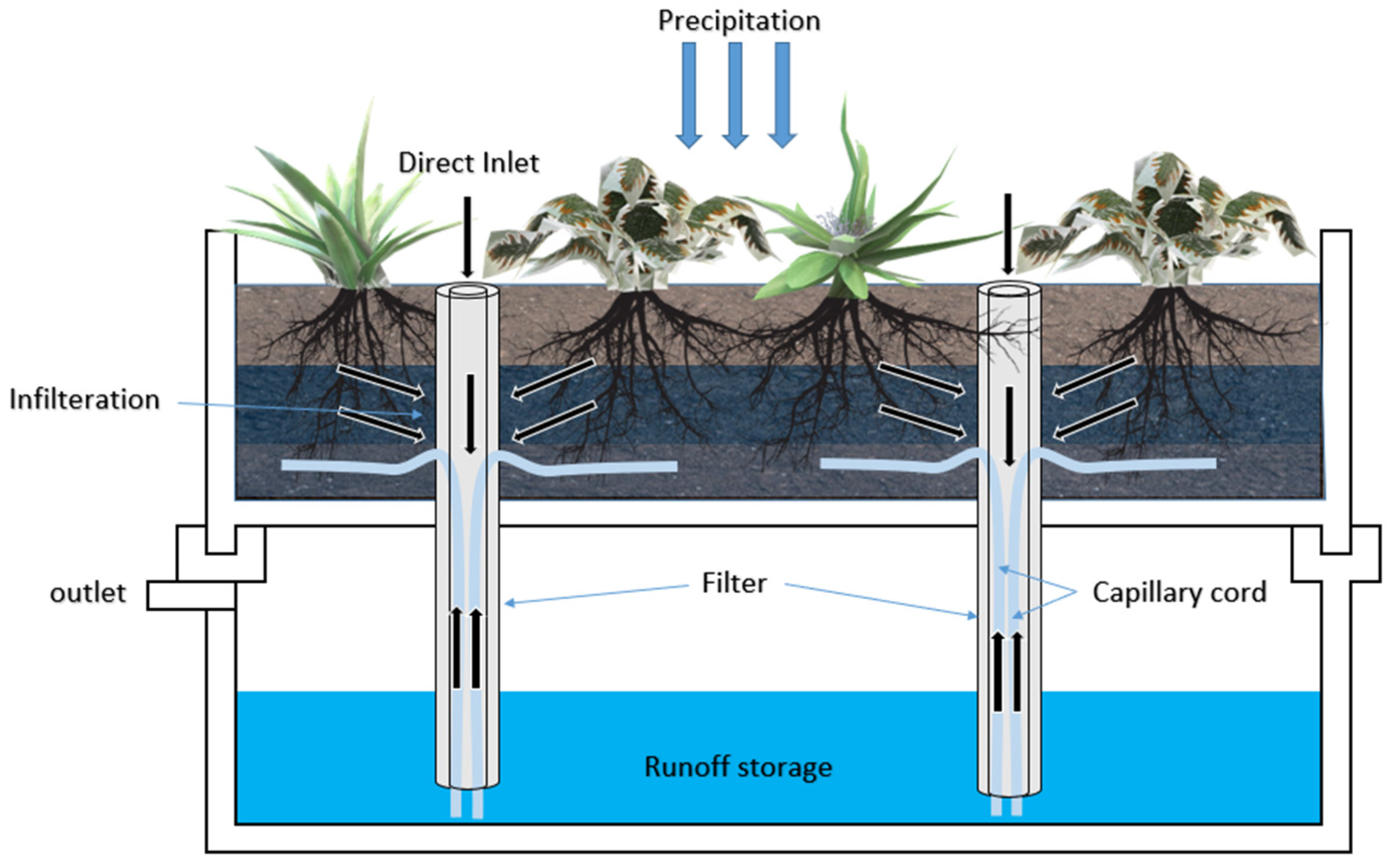 2.1. Definition of the Novel Drainage and Capillary Irrigation System