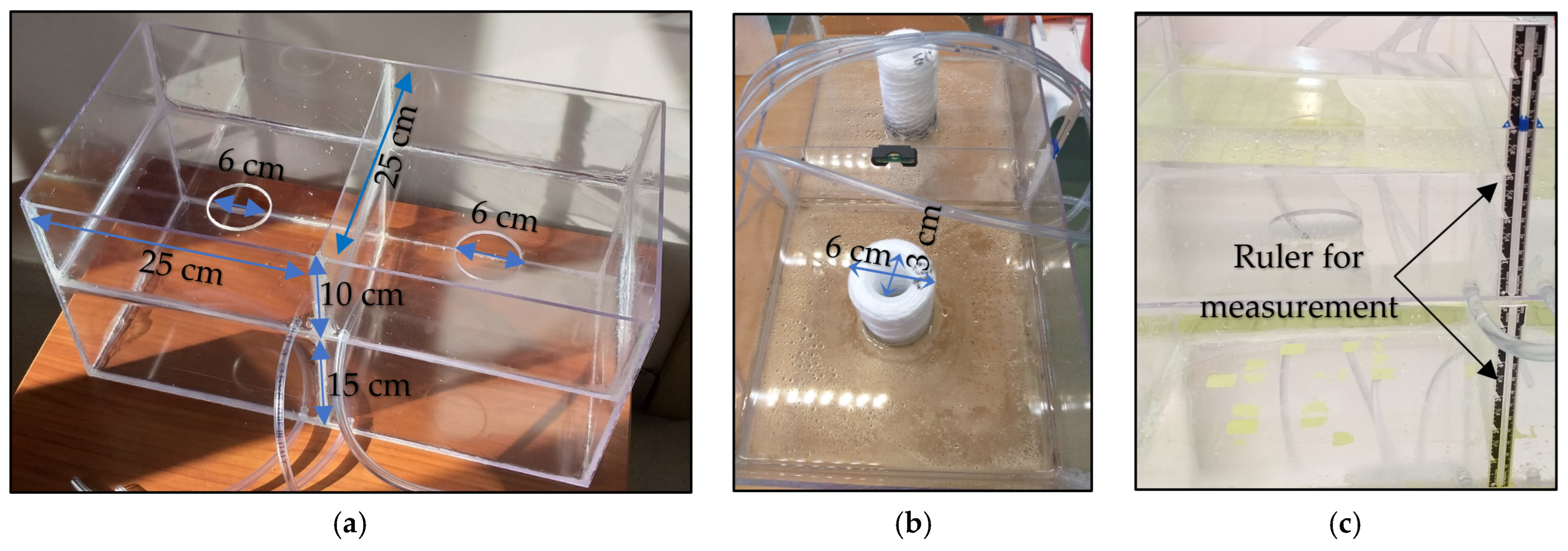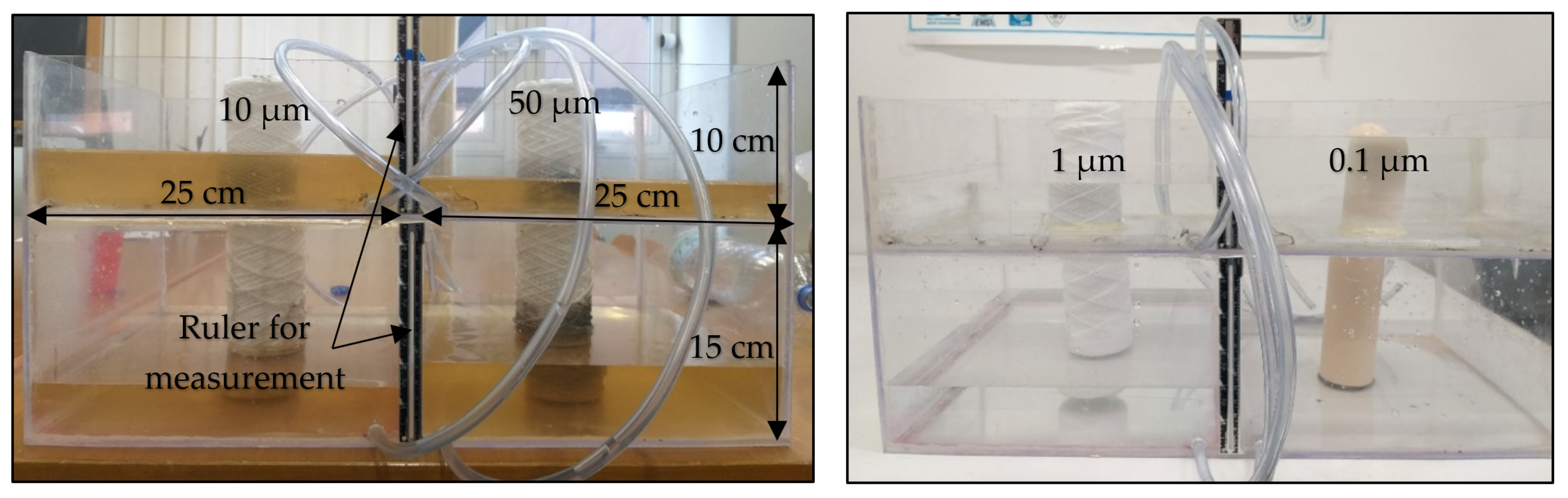 2.3. Selected Filters Characteristics and Sub-Surface Irrigation System Using Filters and Cords