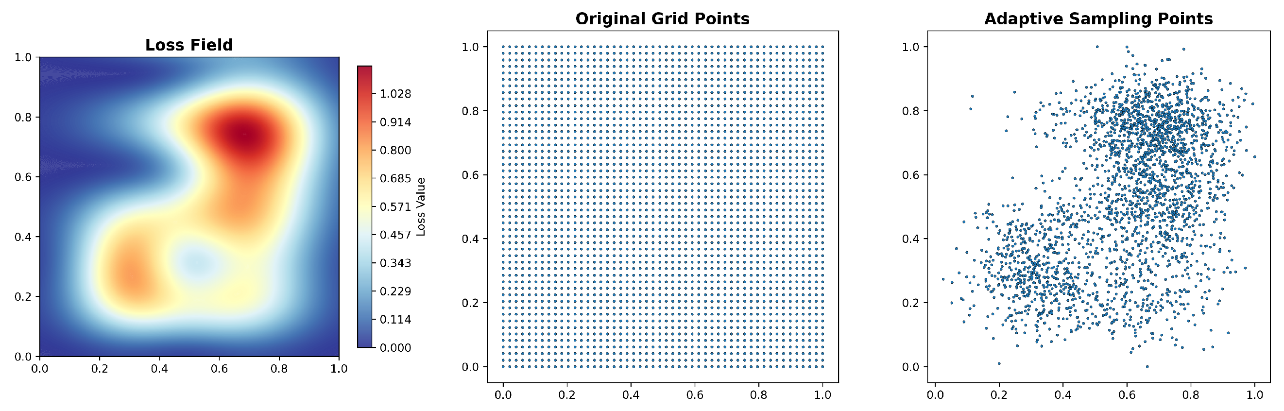Figure 6, its equation loss remains high. This strategy essentially uses data to provide local compensation in high-gradient regions without fundamentally enhancing the PINN’s ability to fit the governing equations themselves.