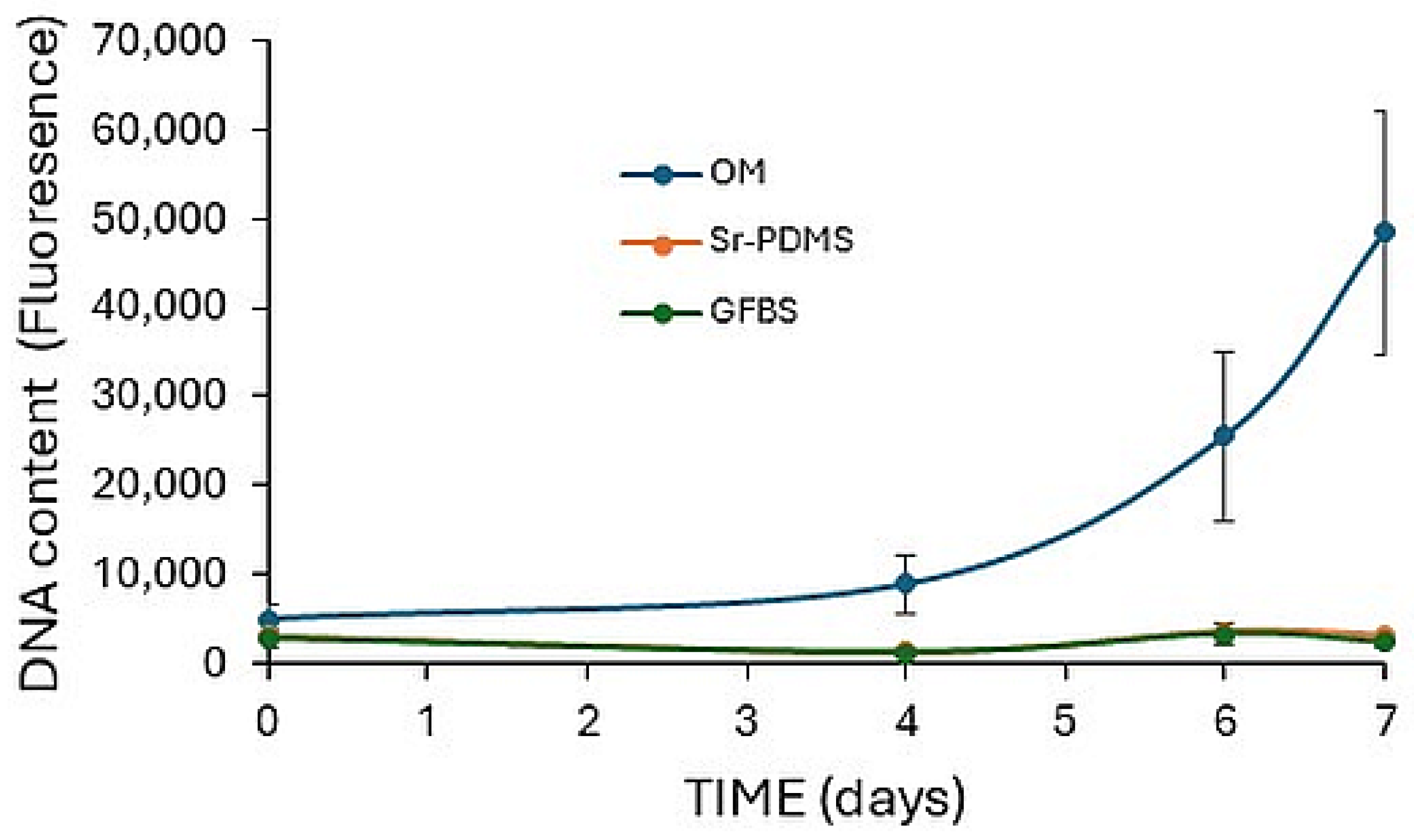 To assess the effect of the sealants on cell proliferation, DMEM pre-conditioned with either Sr-PDMS or GFBS (immersed for 7 days in 10 mL of DMEM at 37 °C, filter-sterilised and completed with appropriate additives) was applied to the cells (n = 6 wells per treatment group).