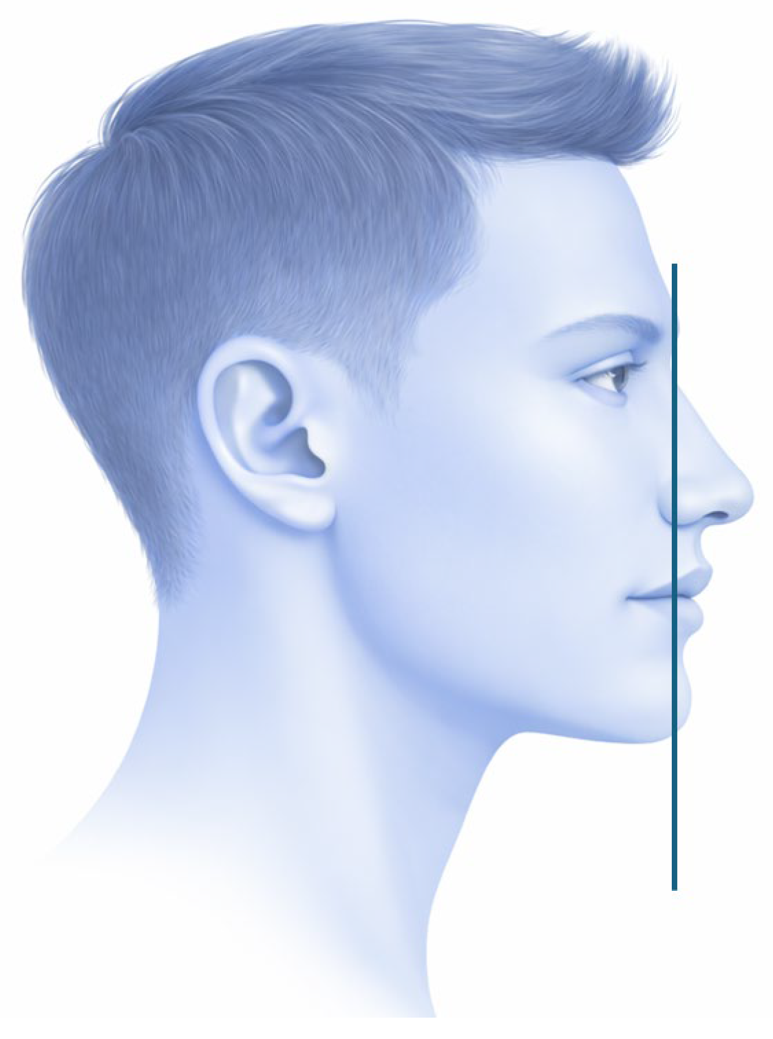 - Chen, M.W.J.; Lum, J.L.; Yong, C.W.; Lai, W.M.C.; Wong, R.C.W. Placing the maxilla in the most aesthetic sagittal position: Validation of several reference lines in relation to forehead shape. Int. J. Oral Maxillofac. Surg. 2024, 53, 405–412. [Google Scholar] [CrossRef] [PubMed]