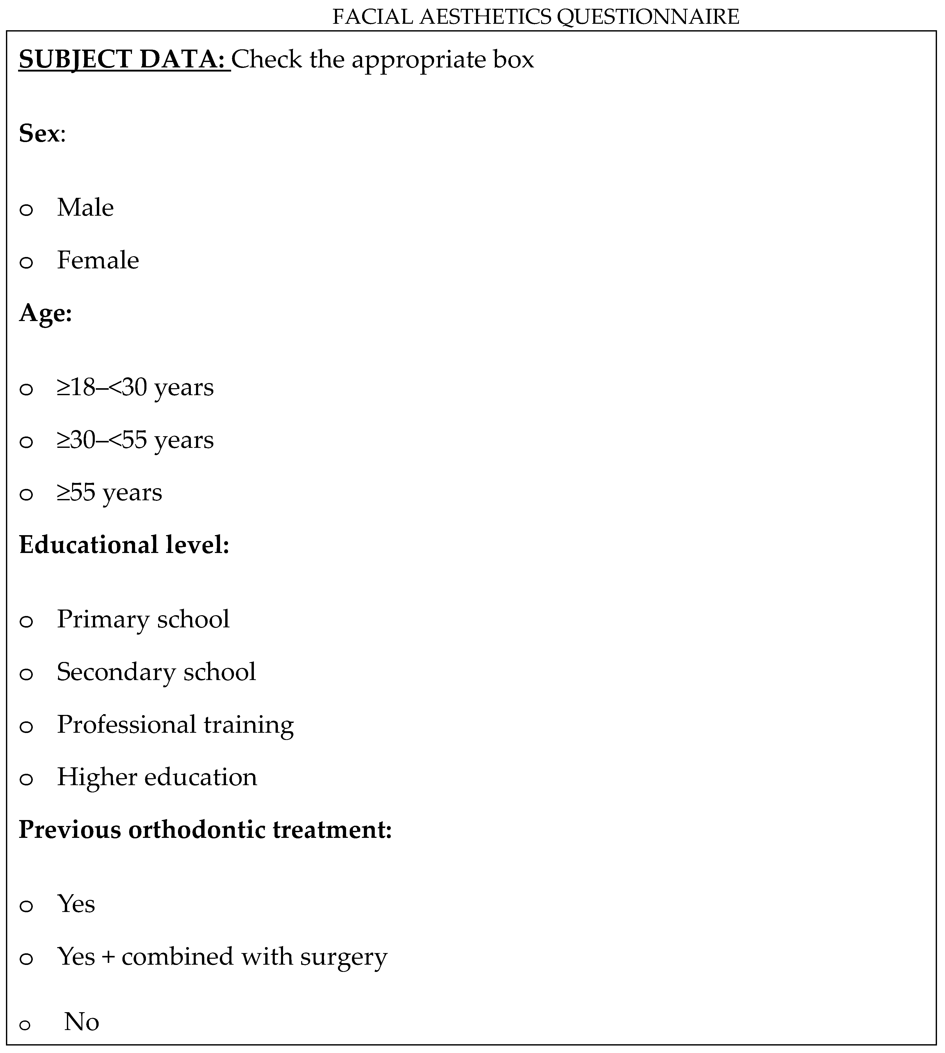 - Dourado, G.B.; Volpato, G.H.; de Almeida-Pedrin, R.R.; Pedron Oltramari, P.V.; Freire Fernandes, T.M.; de Castro Ferreira Conti, A.C. Likert scale vs. visual analog scale for assessing facial pleasantness. Am. J. Orthod. Dentofac. Orthop. 2021, 160, 844–852. [Google Scholar] [CrossRef] [PubMed]