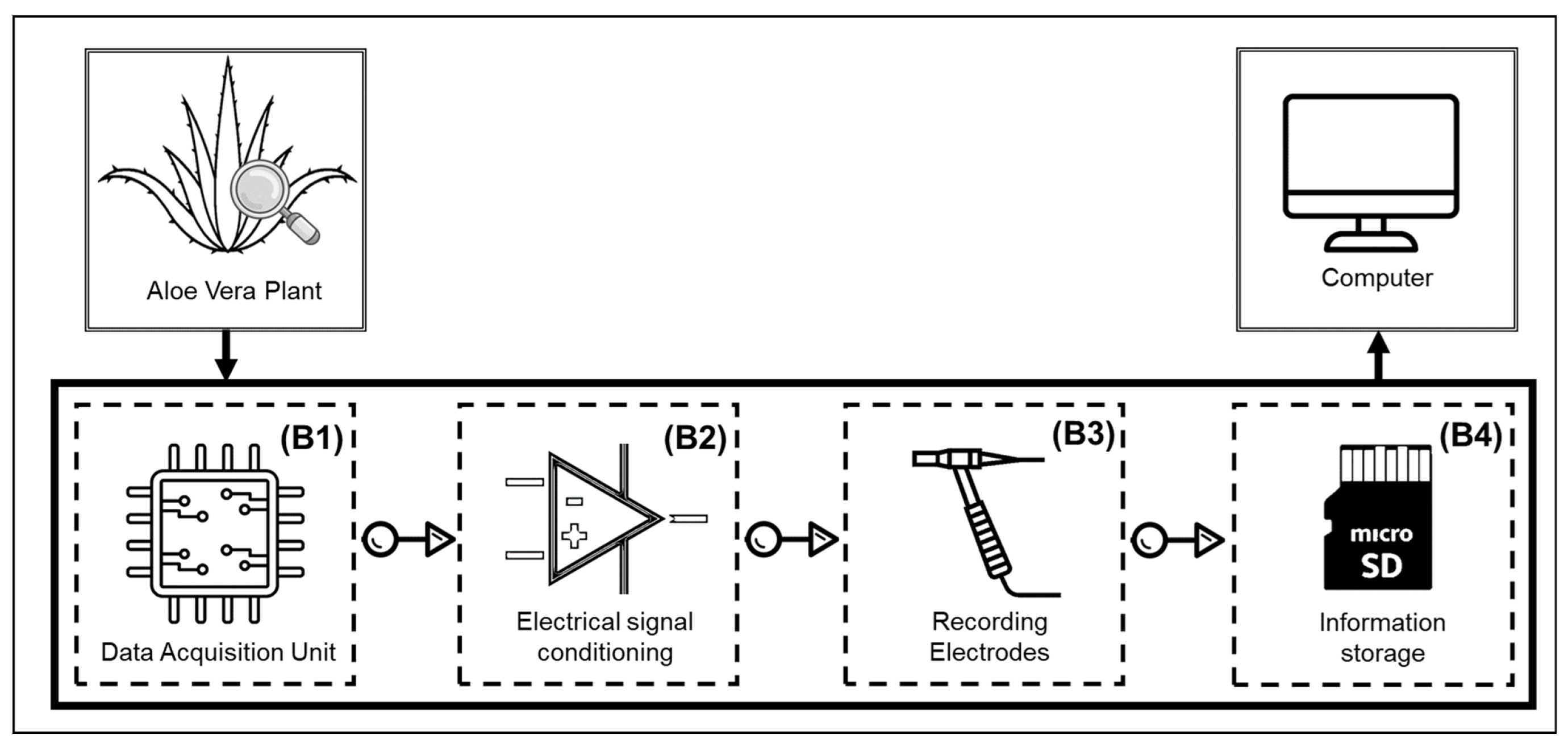 2.3. Proposed Experimental Design for Acquiring the Electrical Signal of the Aloe vera Plant