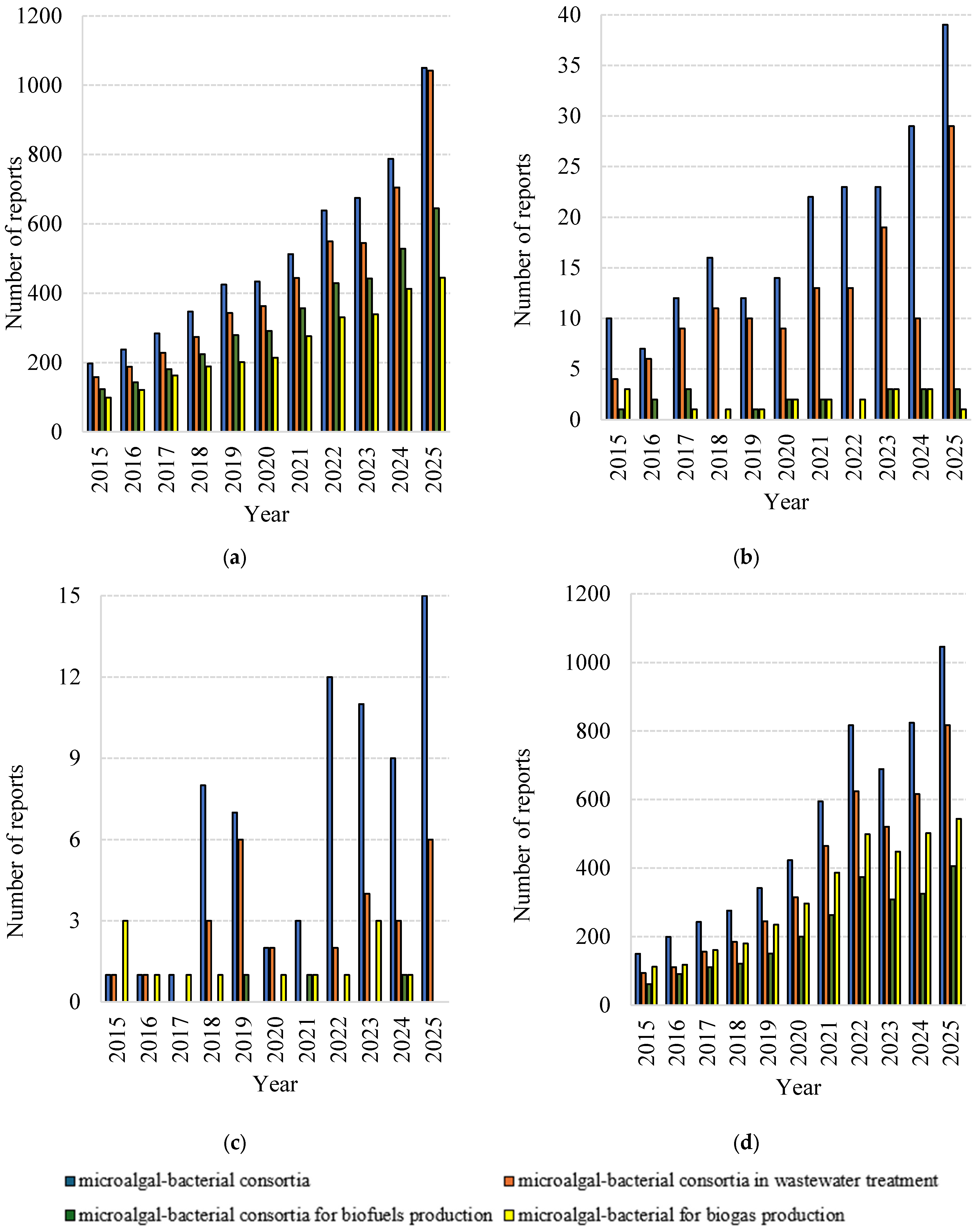 - Dai, C.; Wang, F. Potential Applications of Microalgae–Bacteria Consortia in Wastewater Treatment and Biorefinery. Bioresour. Technol. 2024, 393, 130019. [Google Scholar] [CrossRef]