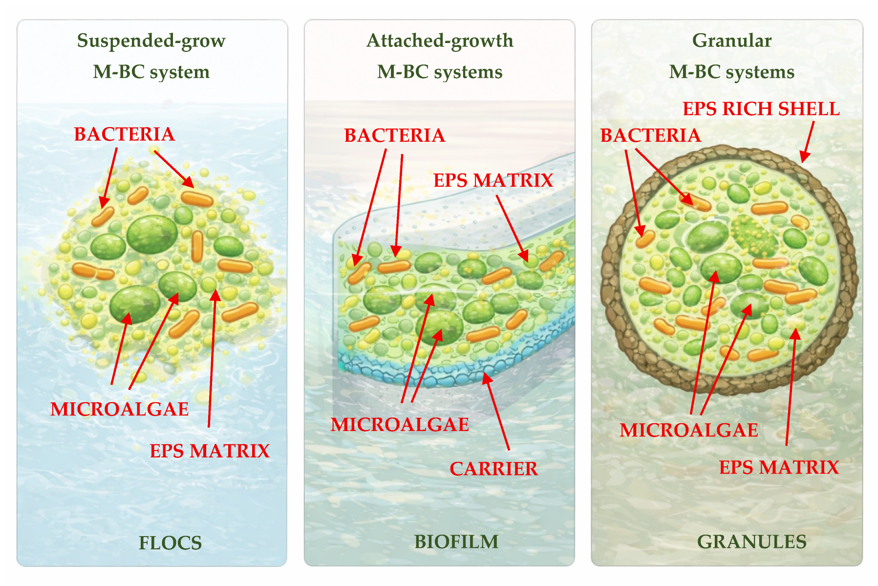 - Gururani, P.; Bhatnagar, P.; Kumar, V.; Vlaskin, M.S.; Grigorenko, A.V. Algal Consortiums: A Novel and Integrated Approach for Wastewater Treatment. Water 2022, 14, 3784. [Google Scholar] [CrossRef]