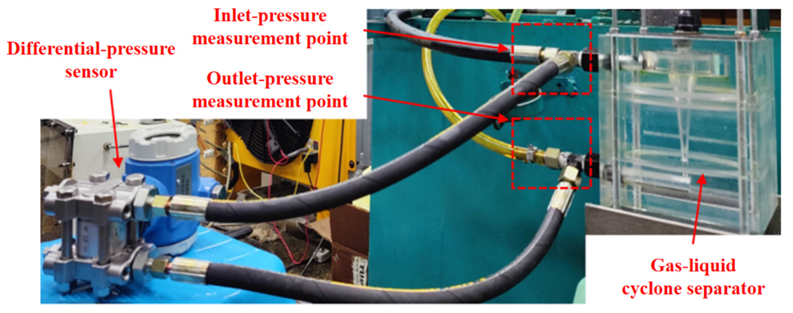 - Zhang, Z.; Shao, M.; Ling, X. Experimental study on the separation performance of a novel gas–liquid separator. Adv. Powder Technol. 2022, 33, 103795. [Google Scholar] [CrossRef]