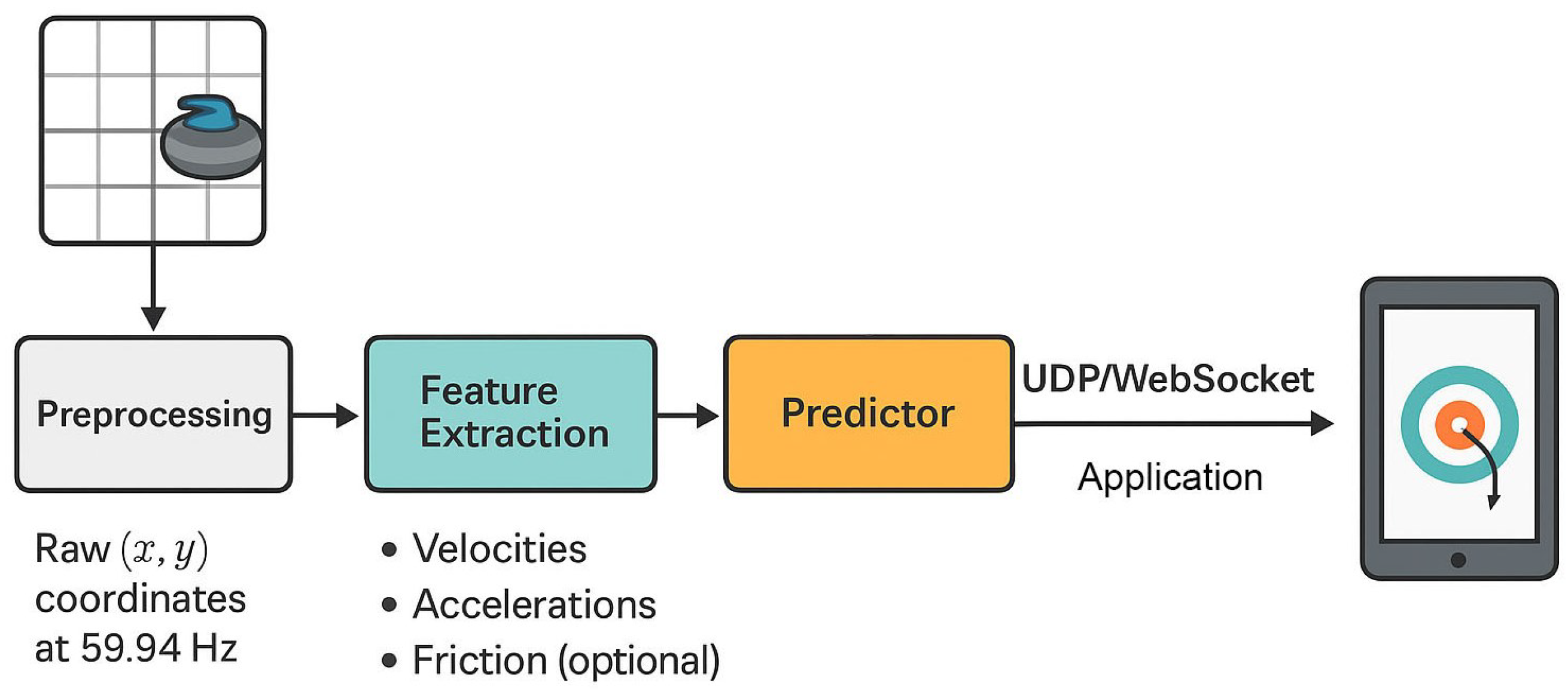On a Raspberry Pi 4B (4 GB RAM), the total prediction time was 21 s per throw. The mean per window latency was ≈0.25 s (including I/O and post-processing). Accordingly, we published updates at an effective cadence of ≈0.25 s while buffering intermediate frames. Adjusting the update rate can further trade freshness for computational headroom as needed. These results indicate that the model maintains acceptable throughput and compute overhead on a low-power edge device, supporting real-time field applications.