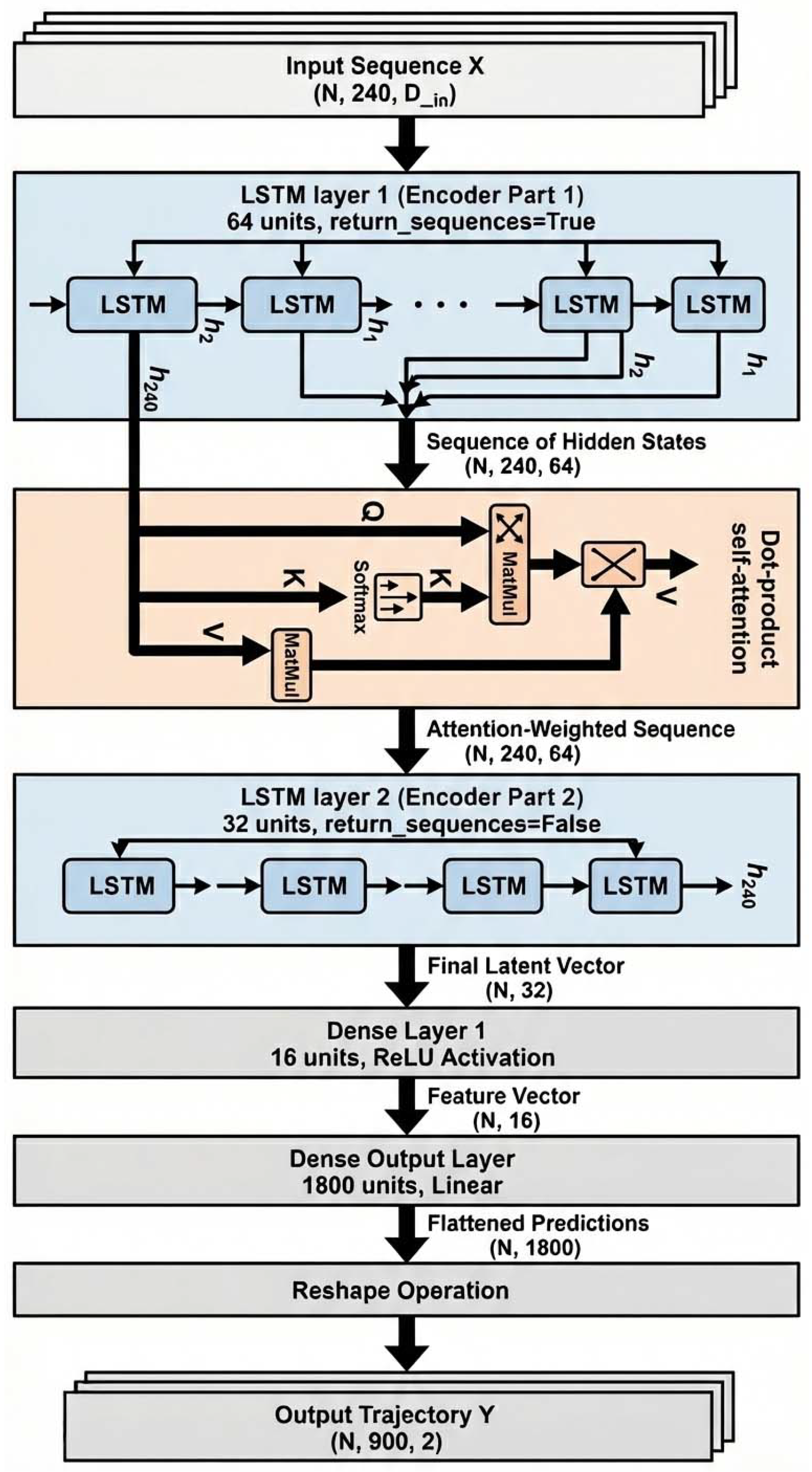 Table 1, all learning-based models (Plain LSTM and Attention-LSTM) were trained and evaluated under the same protocol: identical trajectory-level train/test split, identical pre-processing and feature construction, identical sliding-window settings (