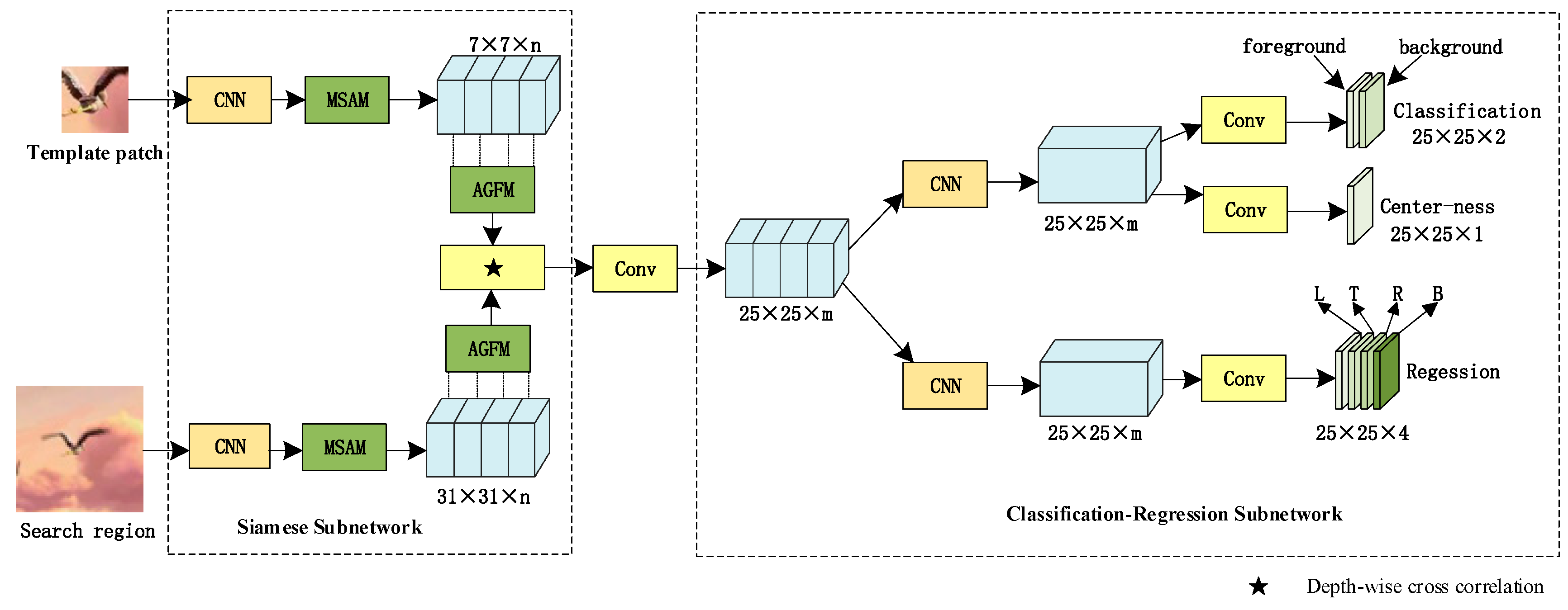 Table 4, demonstrate the superiority of our method. On the OTB100 dataset, it attains an SR of 0.653 and a PR of 0.884. These metrics further reach 0.595 in SR and 0.813 in PR on UAV123. Under the same training settings, the proposed method exhibits a pronounced performance advantage over the SiamCAR baseline as well as other mainstream Siamese trackers. These results suggest that the proposed MSAM and AGFM effectively refine feature representation and fusion in complex scenarios, enabling the tracker to maintain robust object tracking while further improving bounding-box localization accuracy. In terms of efficiency, the proposed method runs slower than lightweight baselines such as SiamFC and SiamRPN, but delivers more substantial performance gains. Compared with some more complex models, our approach maintains competitive and stable success and precision while reducing the number of parameters and GLOPs. Overall, the proposed method achieves strong tracking performance while preserving a lightweight design, thereby striking an effective balance between accuracy and computational cost. This trade-off makes it a practical solution for the engineering deployment of Siamese-network-based tracking algorithms.