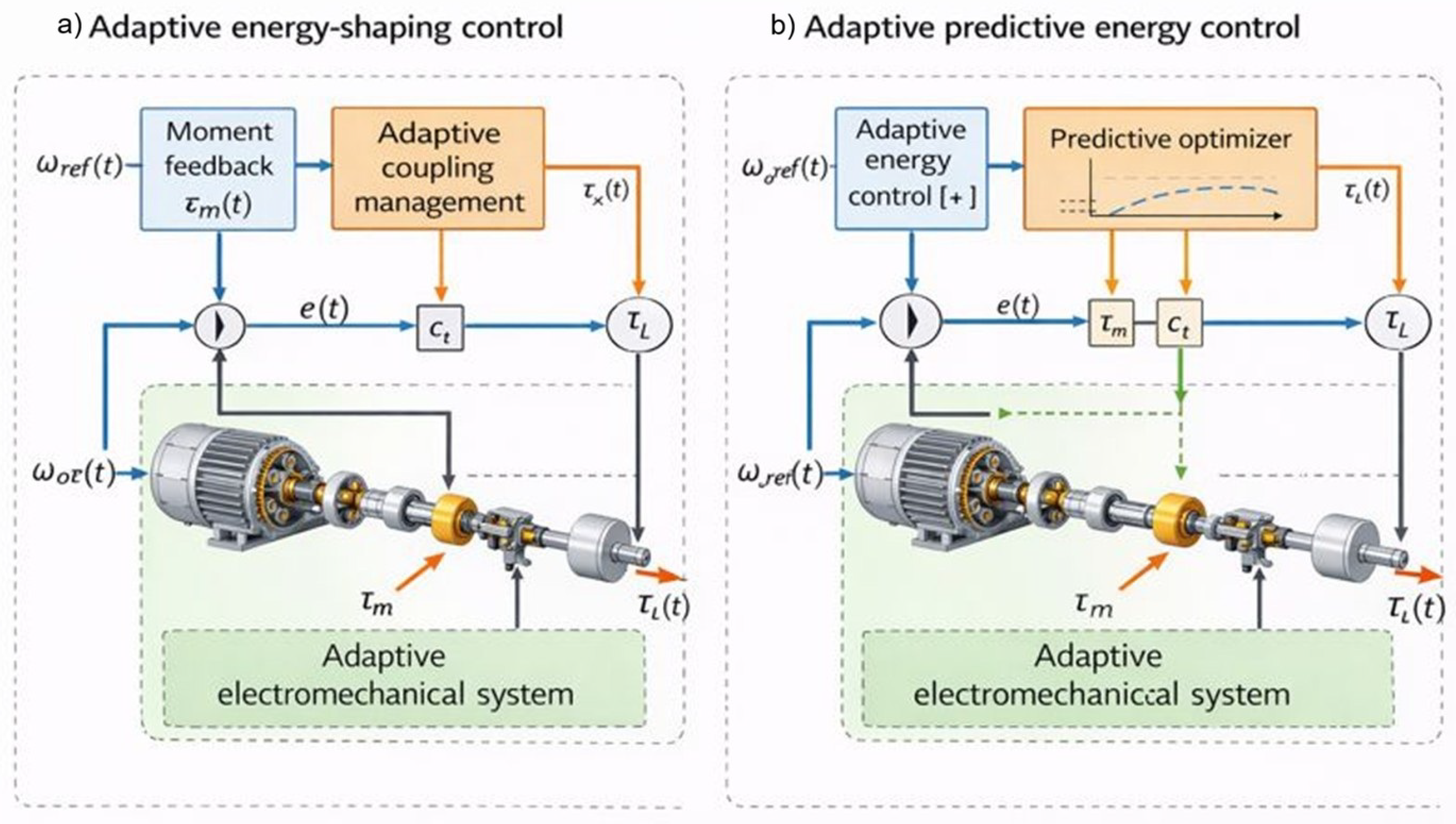 At the control theory level, energy-oriented approaches (passivity-based/energy shaping) are well known for physical systems, where the controller is synthesized through the desired energy form and dissipative properties of the system. These methods are especially natural for electromechanical objects described in Lagrangian/Hamiltonian form, since they allow the construction of control laws consistent with internal energy flows. In the context of drives, this implies a fundamentally different emphasis: instead of “strengthening feedback” to suppress errors, it is proposed to control energy redistribution between system elements, reducing peak motor loads and improving physical feasibility of operating regimes under constraints.