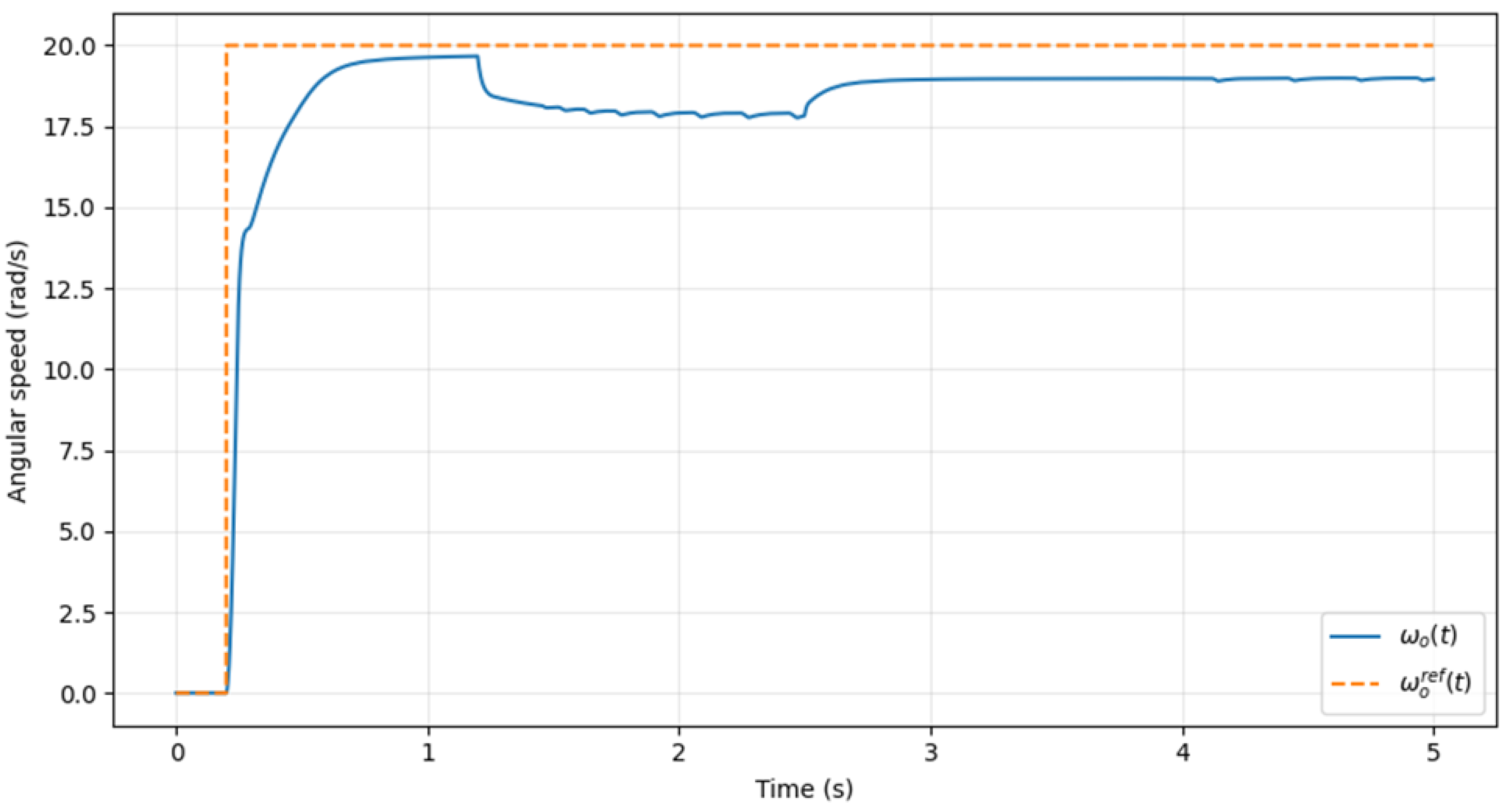 Figure 12 shows the time responses of the reference and actual output angular speeds for the two control strategies.