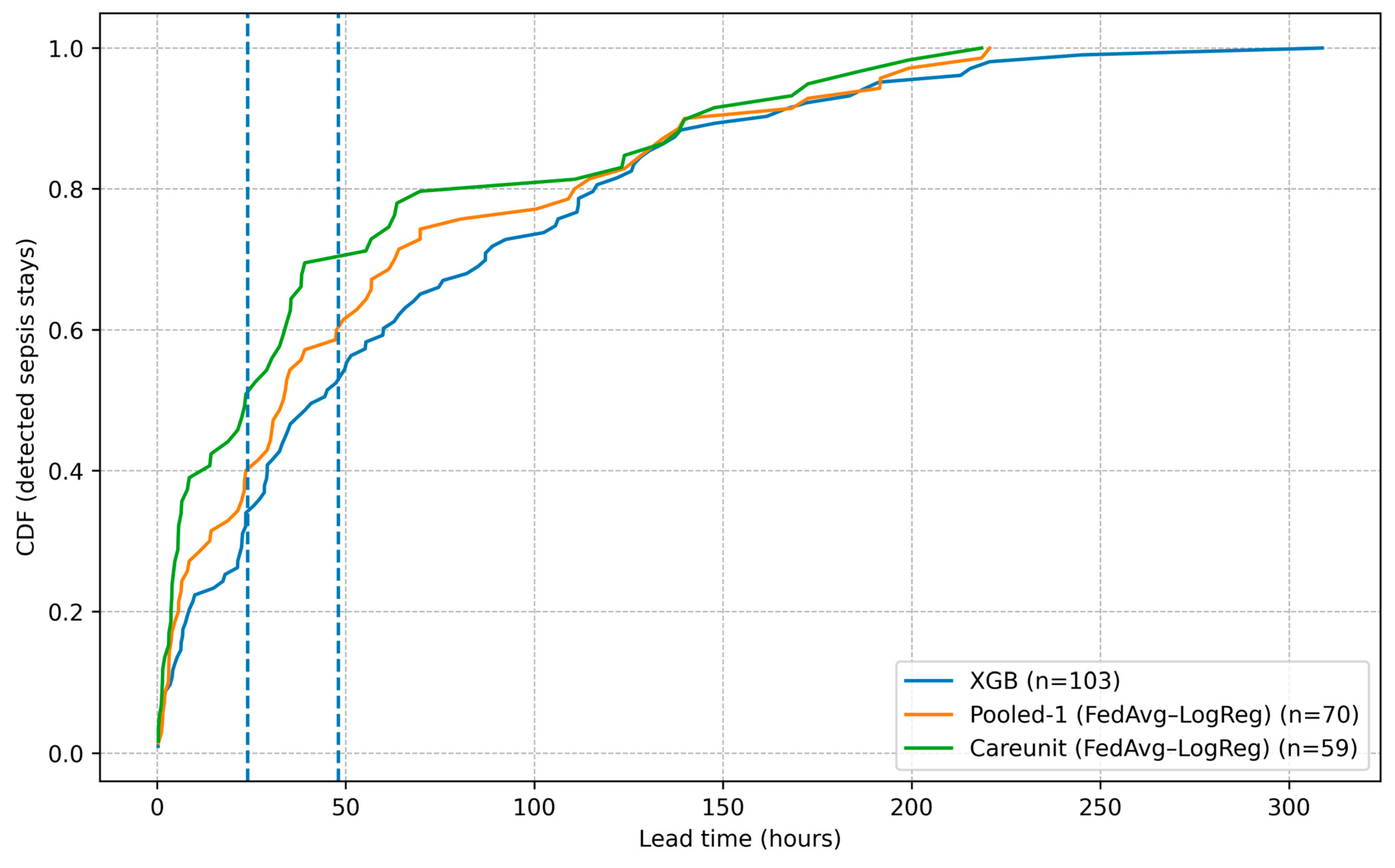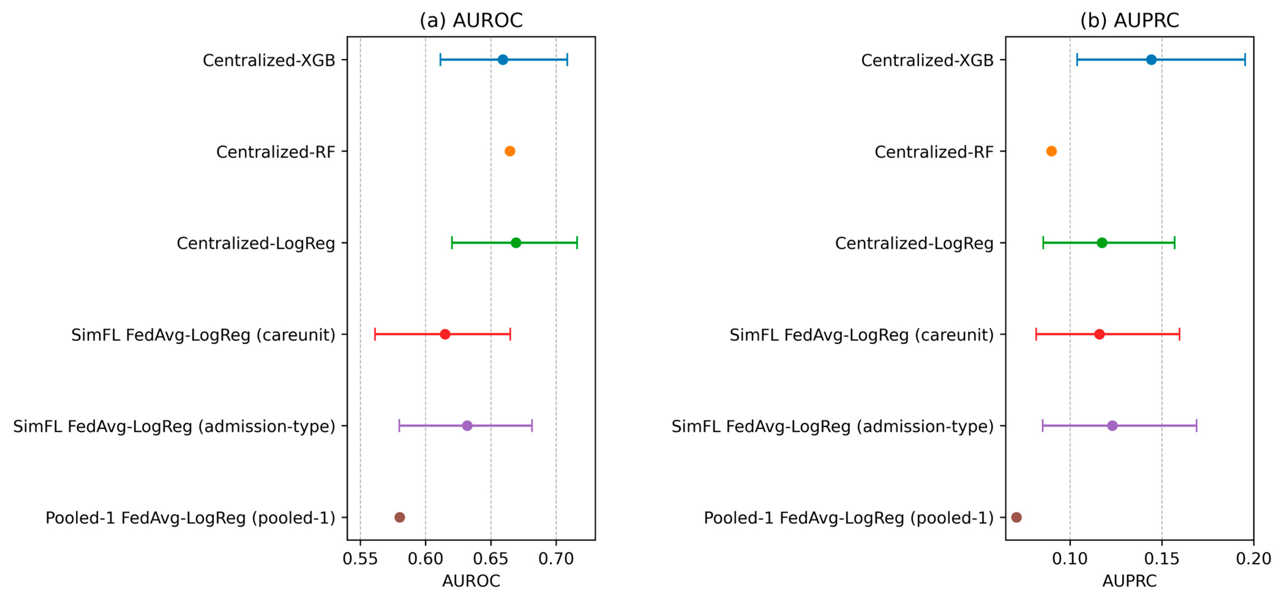 | Careunit LogReg | FedAvg | 31.4% | 23.5 | 4.5–62.2 | 0.999 |