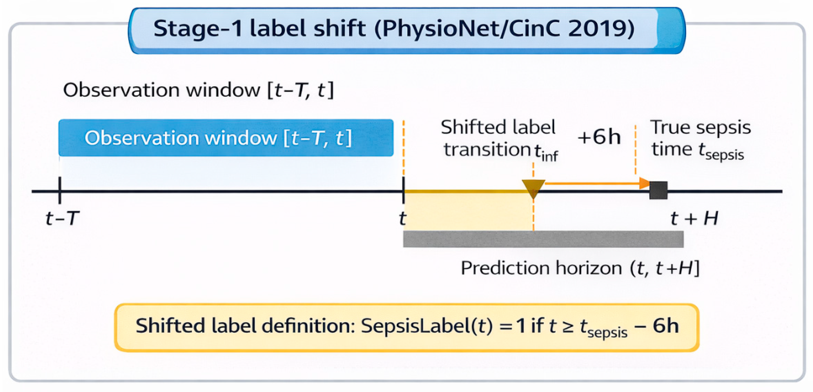 | Algorithm 1. Stage-2 Sepsis-3 proxy labeling and windowing rules (summary) |