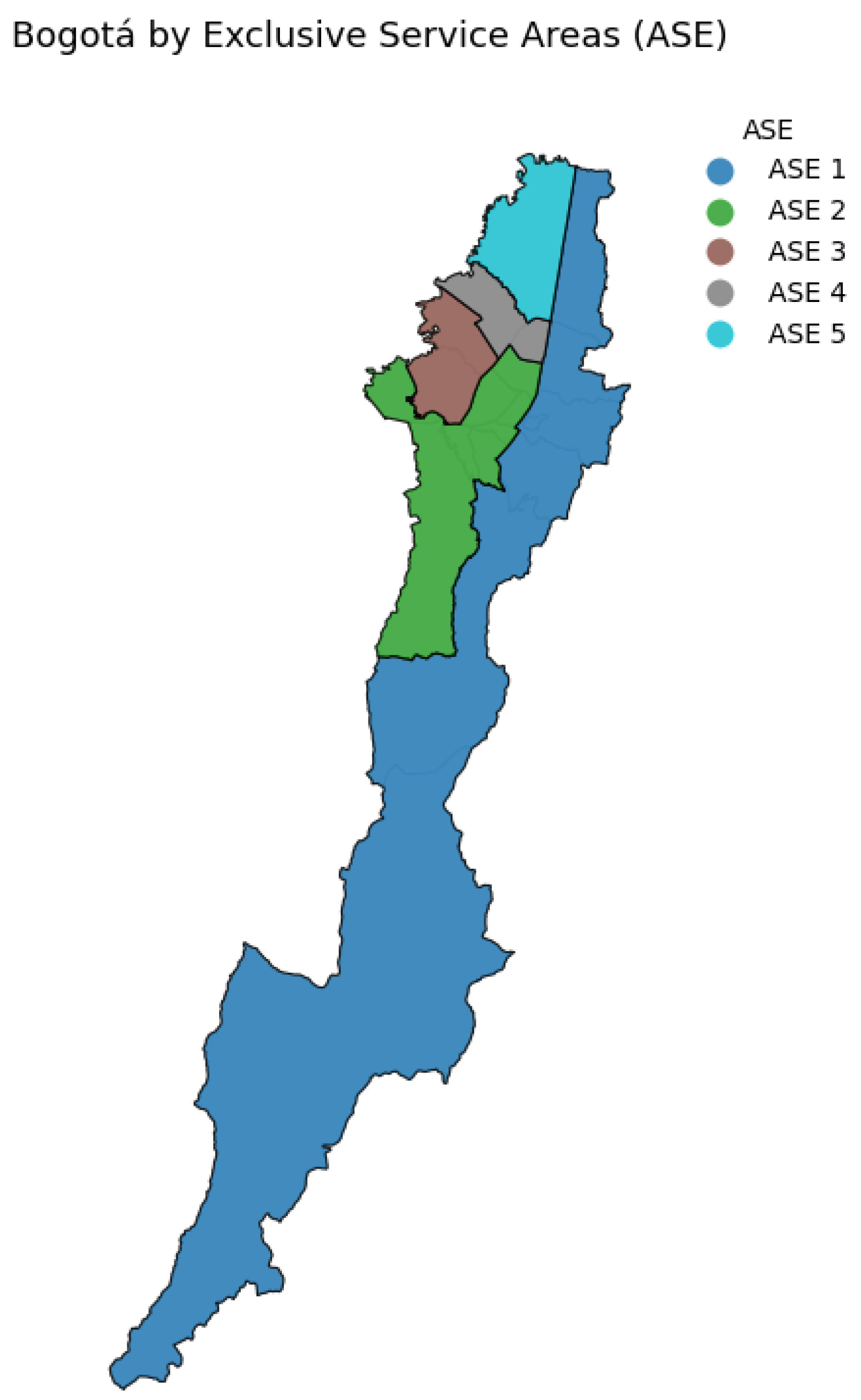 Figure 3 shows the territorial distribution of the ASE in Bogotá. This partition is used in the methodology as an operational reference to associate the biomass supply from urban pruning and to structure the spatial analysis by service area.