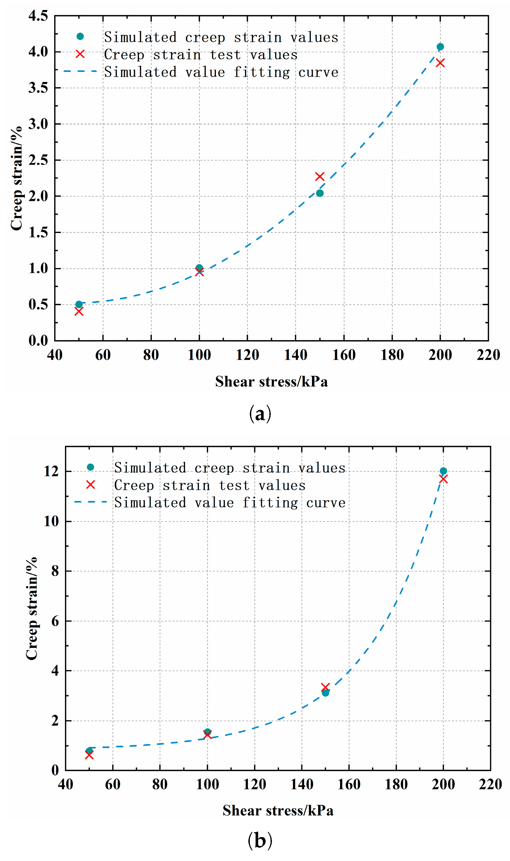 5.2. Numerical Simulation Results of Triaxial Creep Tests