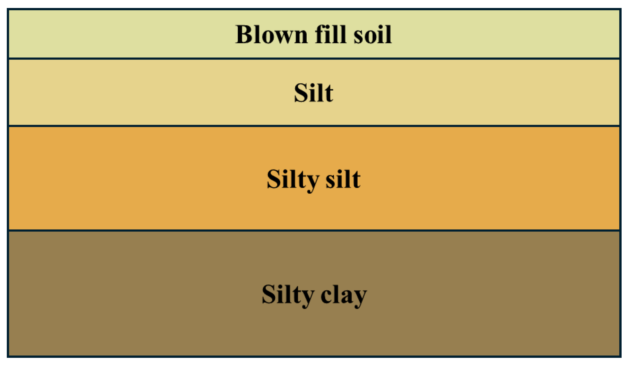 | 3 | Silty silt | 10.3 | 19.3 | 0.35 | 11.75 | 8.57 | 1.712 | 3.04 | 2.76 × 10−8 | 1.04 × 10−10 |