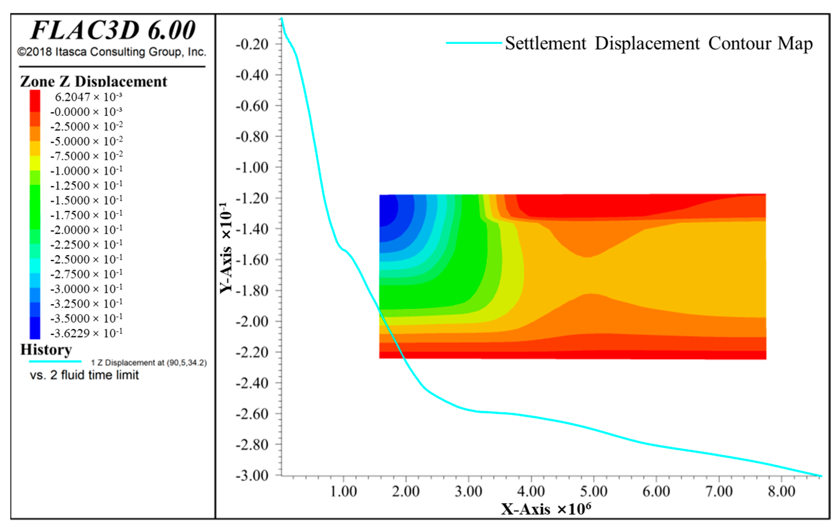 - Temperature elevation markedly intensifies creep deformation in the fill material, with heightened temperature sensitivity under undrained conditions; drainage effectively suppresses creep progression. Shear stress exerts a nonlinear driving effect on creep strain, accelerating structural damage and approaching instability beyond a critical threshold (approximately 150 kPa).